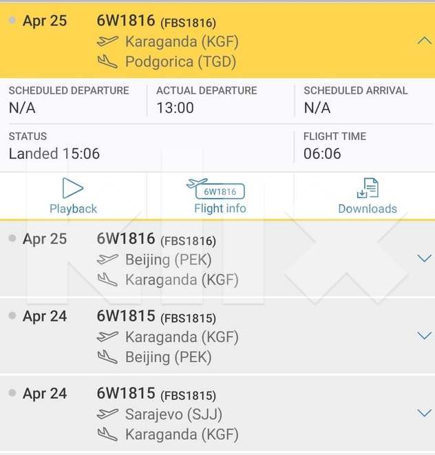 Zanimljiv detalj u samom transportu respiratora je da je avion prije dolaska u Sarajevo, nakratko sletio u Podgoricu. Dakle, avion je iz Sarajeva poletio 24. aprila za Peking, ali se zaustavio u kazahstanskoj Karagandi gdje je dosipao gorivo, da bi opet isti dan nastavio let do glavnog grada Kine. U povratku s respiratorima je također gorivo dosipano u Kazahstanu, ali je umjesto u Sarajevo avion prvo sletio u Podgoricu u 15:06 minuta 25. aprila, da bi tek potom stigao u Sarajevo.