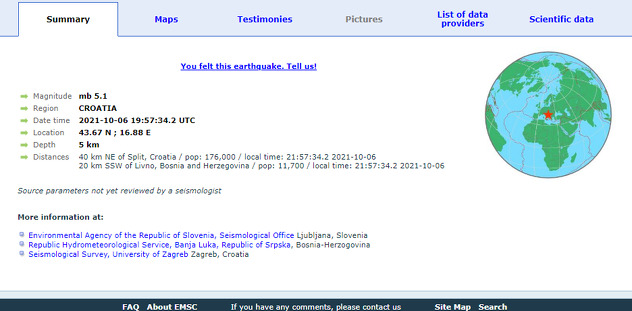 Zatreslo se šire područje Splita u Hrvatskoj i područje oko Livna i Tomislavgrada u BiH.