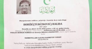 Na Bolji svijet je preselila HODŽIĆ (TURČINOVIĆ) HALIDA iz Kiseljaka. Preselila je na ahiret 22.02.2026. …