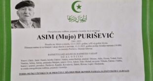 Na Bolji svijet je preselio ASIM (Mujo) PURIŠEVIĆ iz Kiseljaka. Preselio je na Ahiret u …