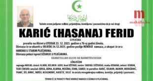 Na Bolji svijet je preselio KARIĆ (Hasana) FERID iz Pločara. Preselio je na Ahiret u …