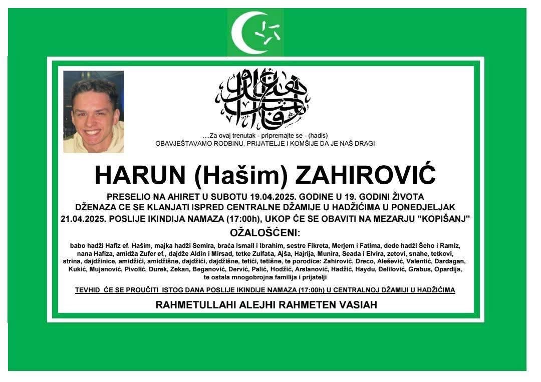 Allaha, dž.š., molimo da se našem Harunu smiluje i uvede ga u džennetske bašče, a hafizu Hašim-ef. i njegovoj porodici podari sabur i olakšanje u prevladavanju ovog velikog iskušenja!