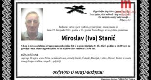 Preminuo je MIROSLAV (IVO) STANIĆ u 77. godini života. Ukop i misa zadušnica dragog nam …