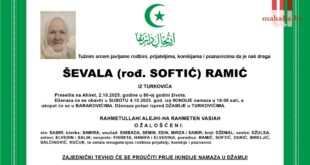 Na Bolji svijet je preselila ŠEVALA (rođ. SOFTIĆ) RAMIĆ iz Turkovića. Preselila na Ahiret u …