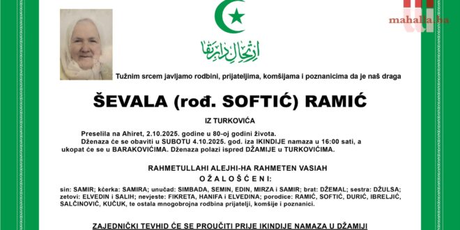 Na Bolji svijet je preselila ŠEVALA (rođ. SOFTIĆ) RAMIĆ iz Turkovića