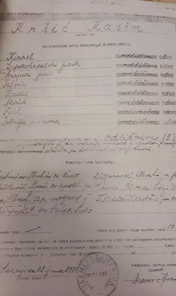 Sutradan mu je klanjana dženaza u porodičnom mezarju pred mnoštvom džematlija, učenika, kolega i prijatelja.