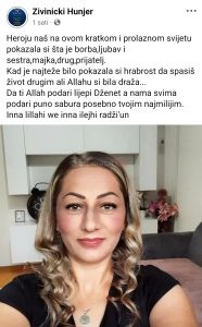 Na Facebook stranici “Živinički Hunjer” objavljena je emotivna poruka oproštaja od voljene sugrađanke ,majke, supruge, sestre Melide Hamzić Durić.