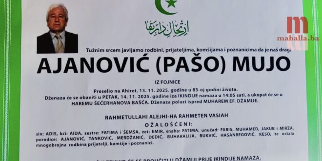Na Bolji svijet je preselio AJANOVIĆ (Pašo) MUJO iz Fojnice.