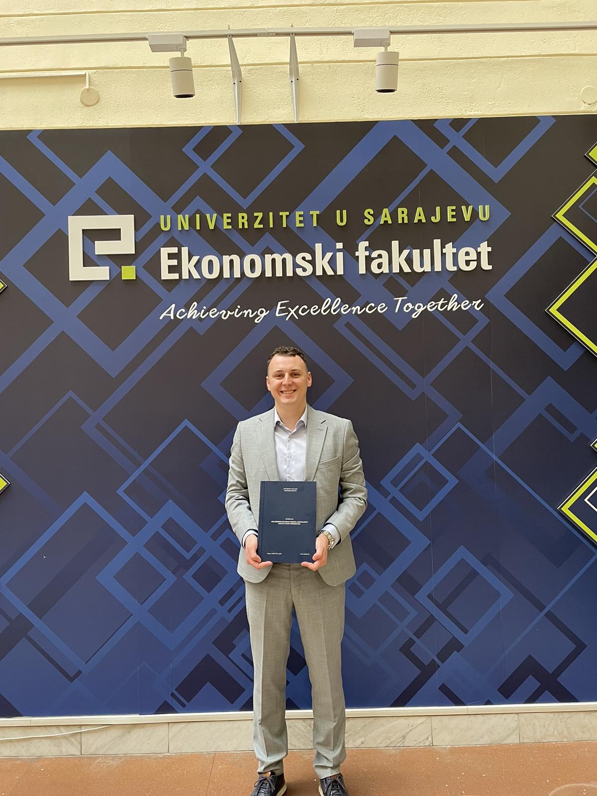 Dana 26. septembra 2022. godine uspješno je odbranio diplomski rad na temu “Etika u sferi menadžmenta” te stekao zvanje bachelor menadžmenta.
