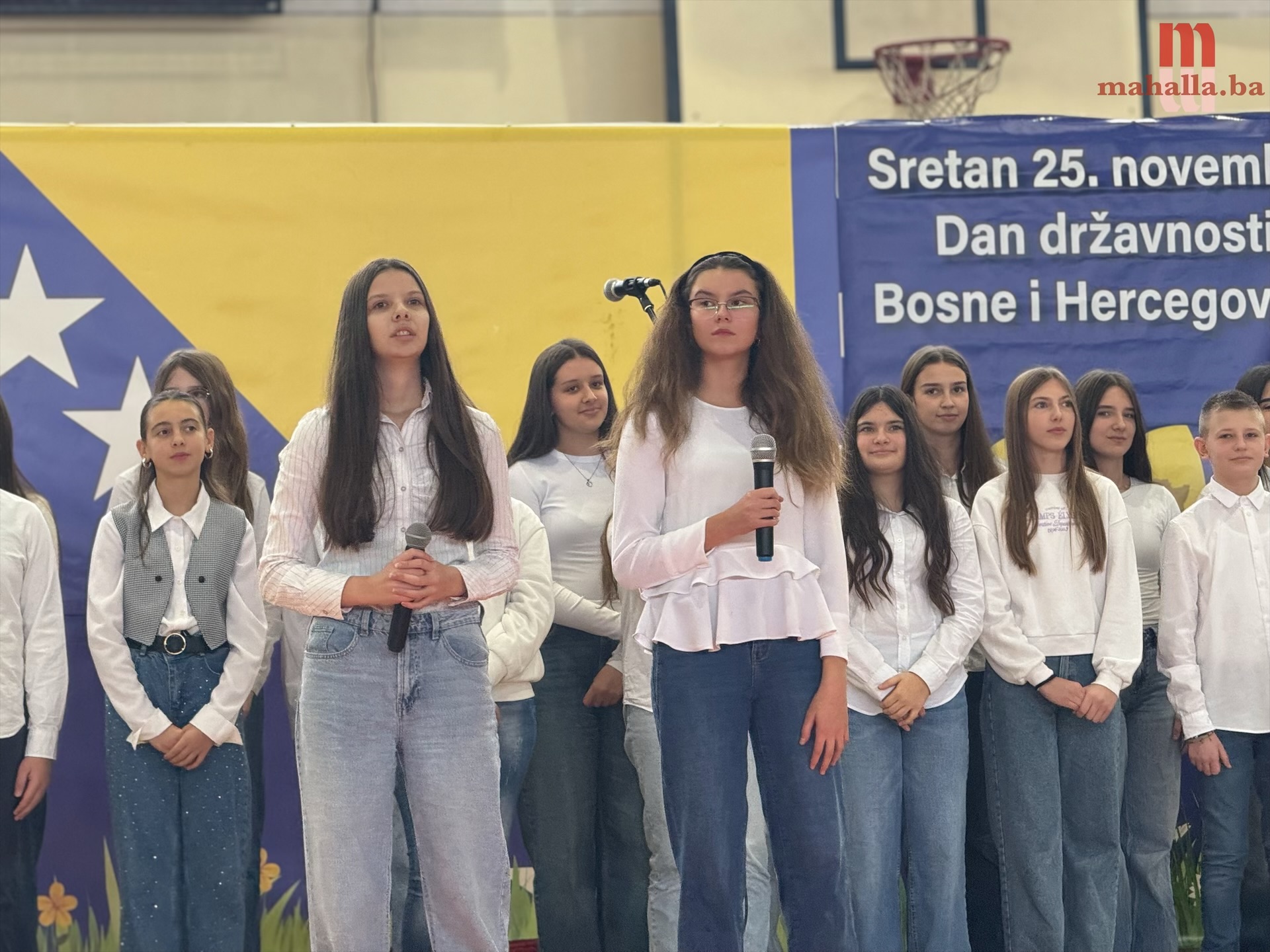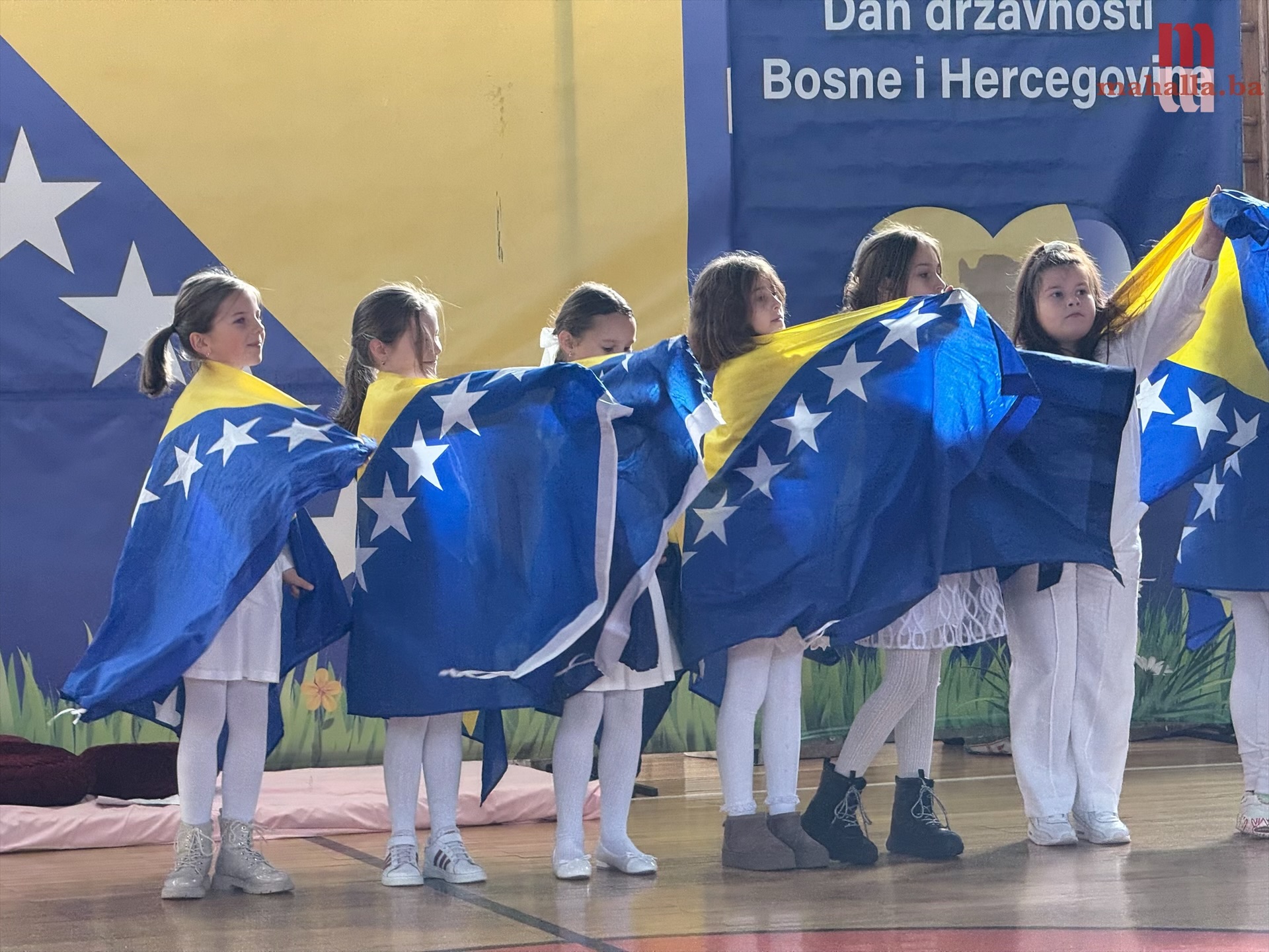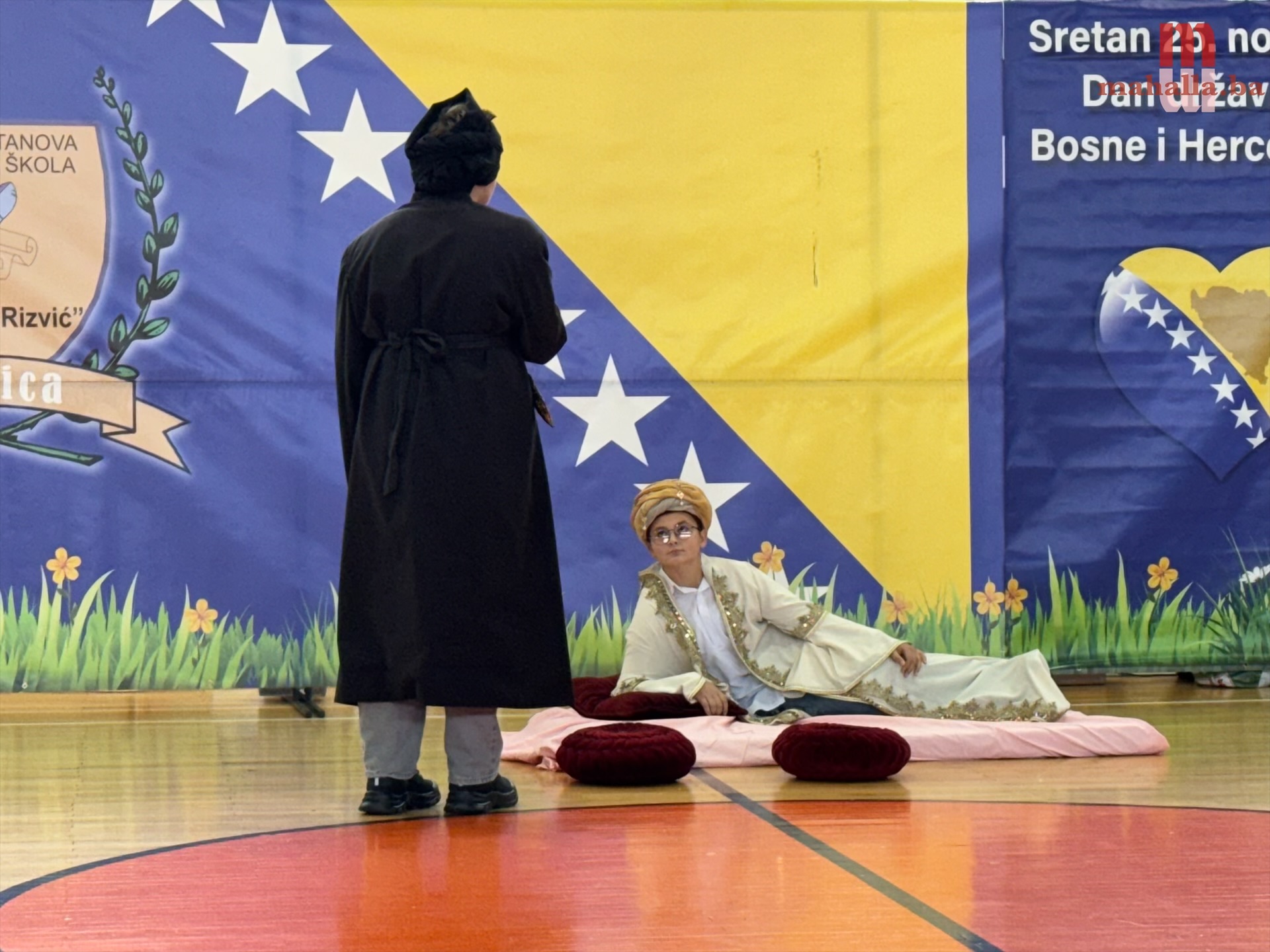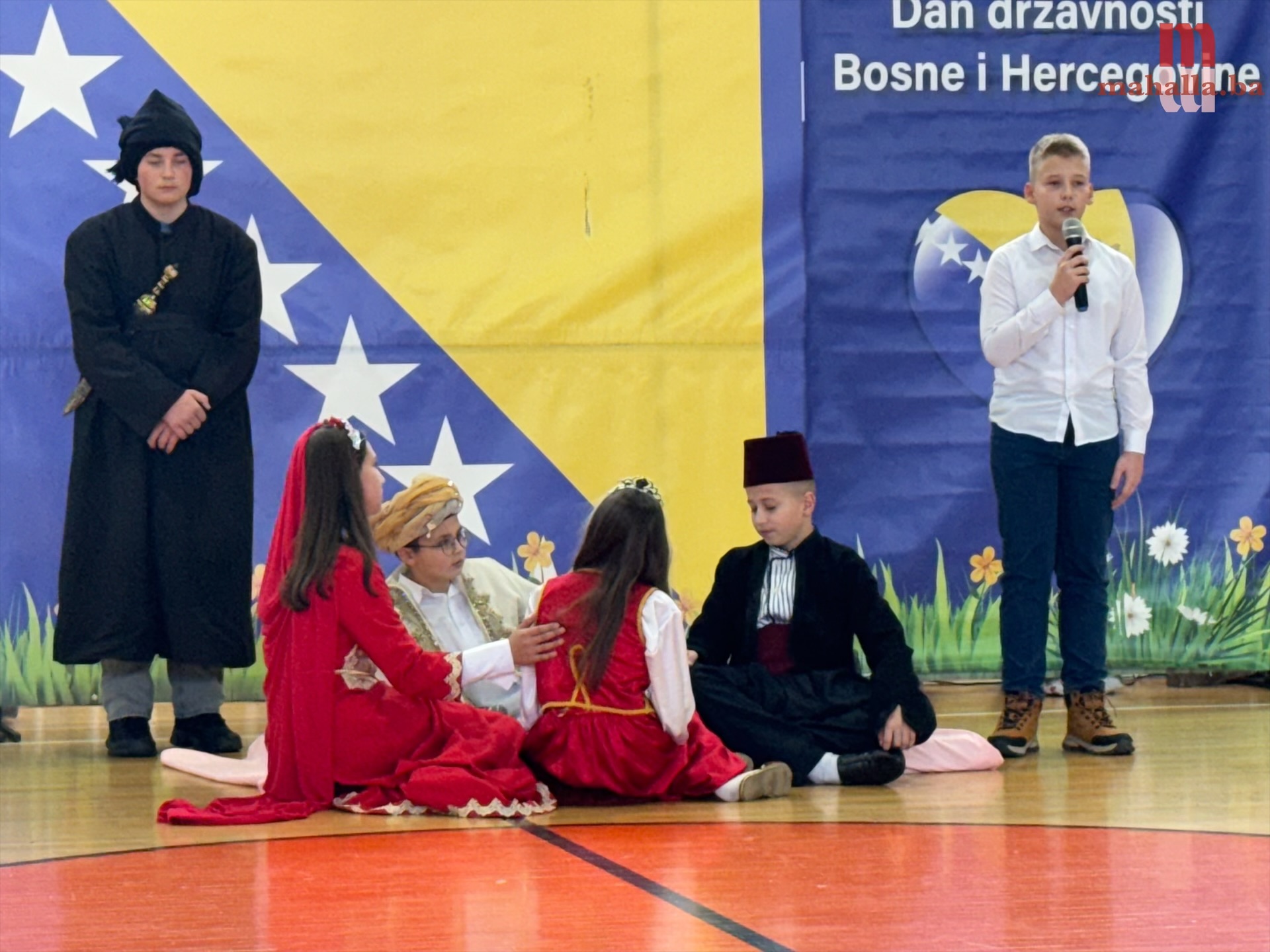 U sali u Novom naselju danas je održana svečana priredba povodom Dana državnosti Bosne i Hercegovine, u organizaciji OŠ “Muhsin Rizvić”, uz učešće učenika i nastavnika OŠ “Ivan Goran Kovačić”.