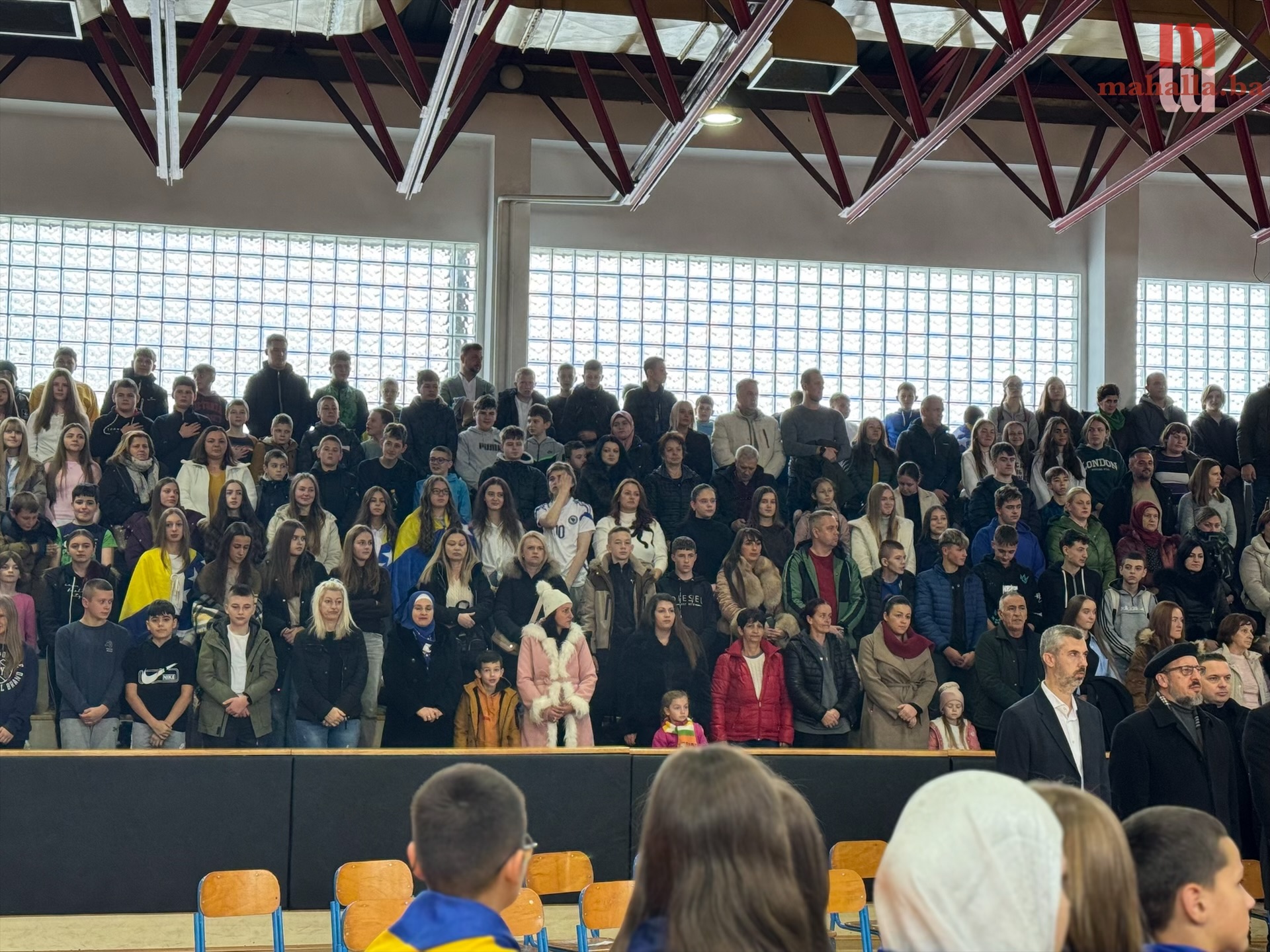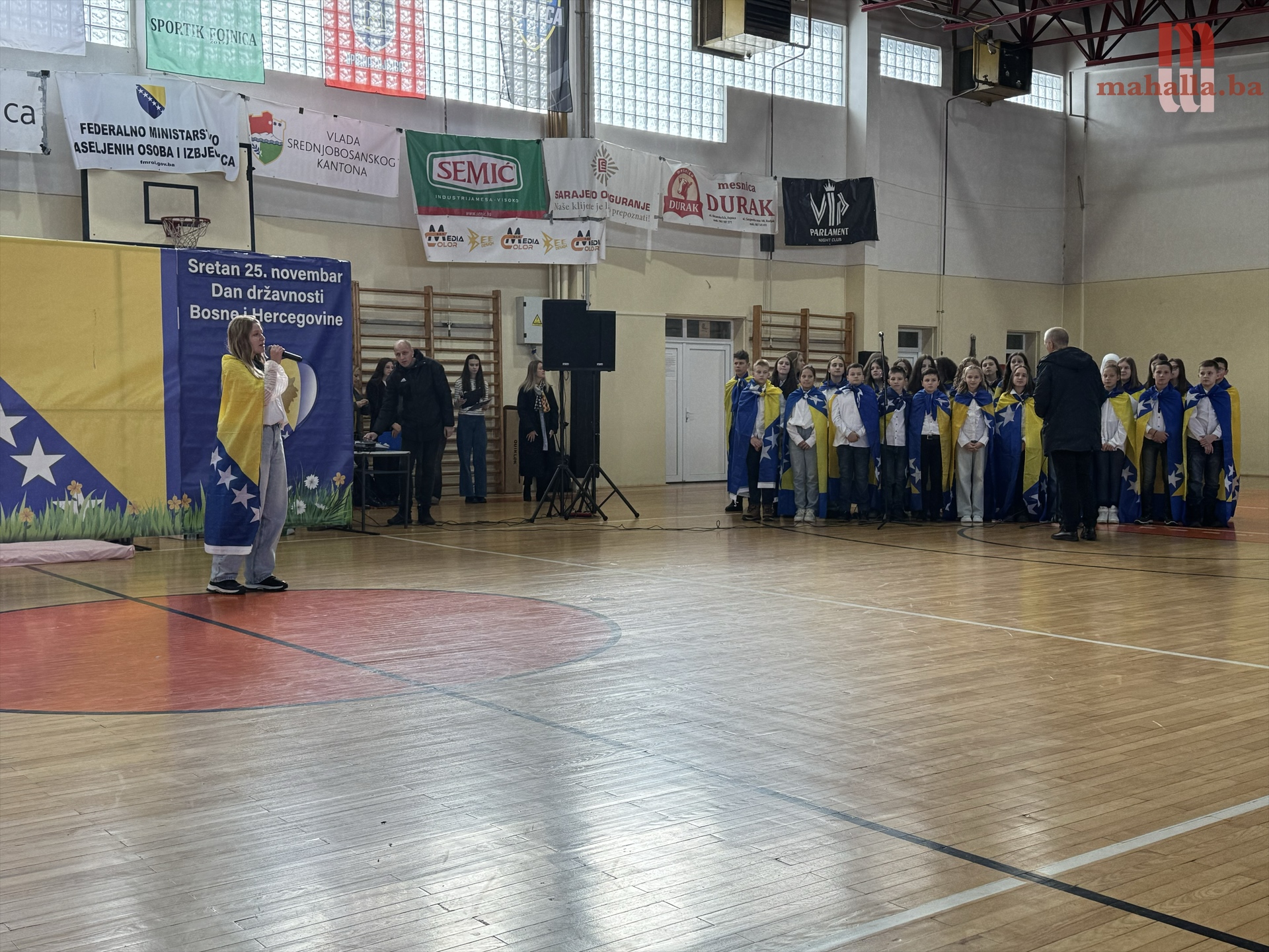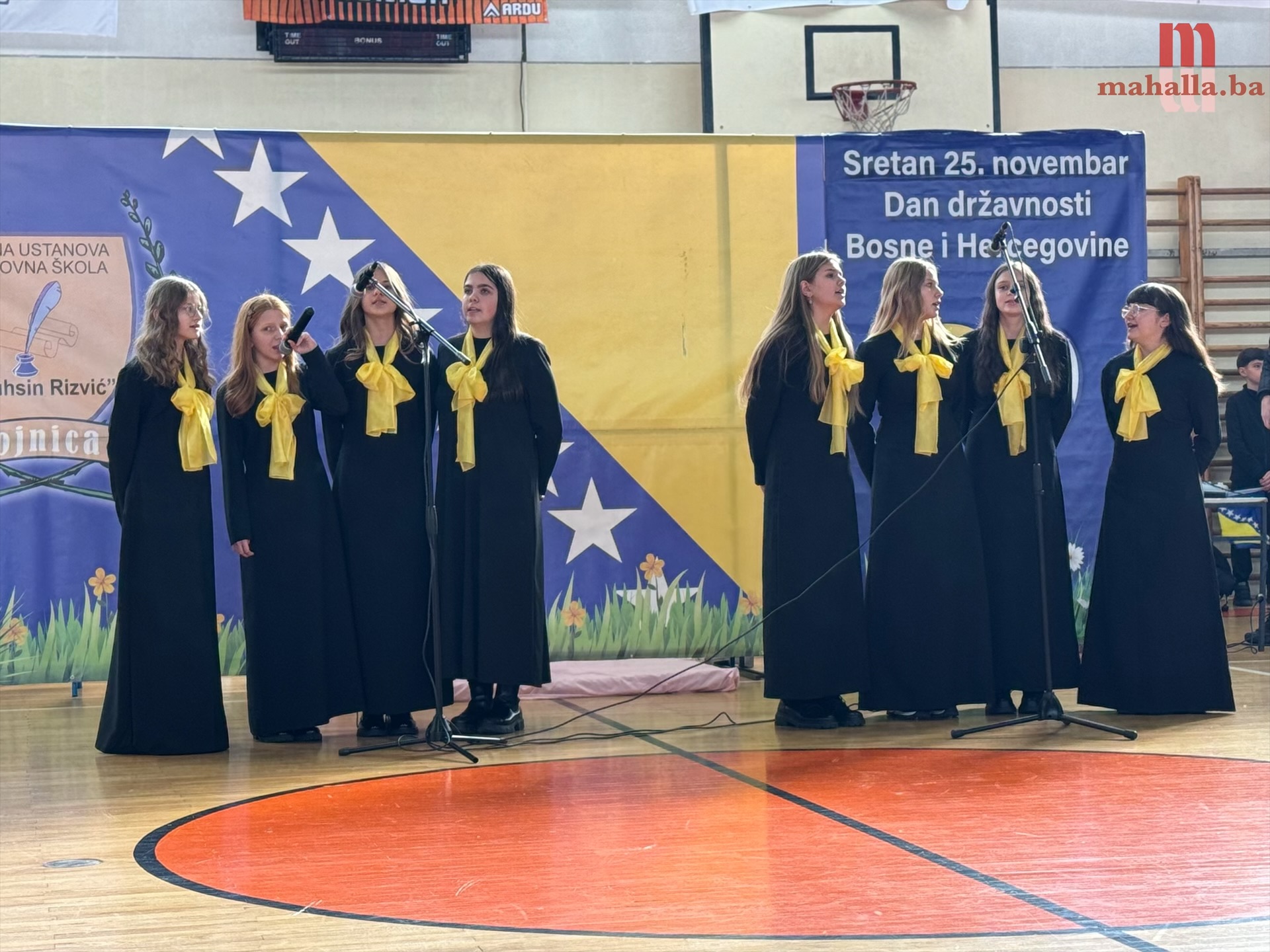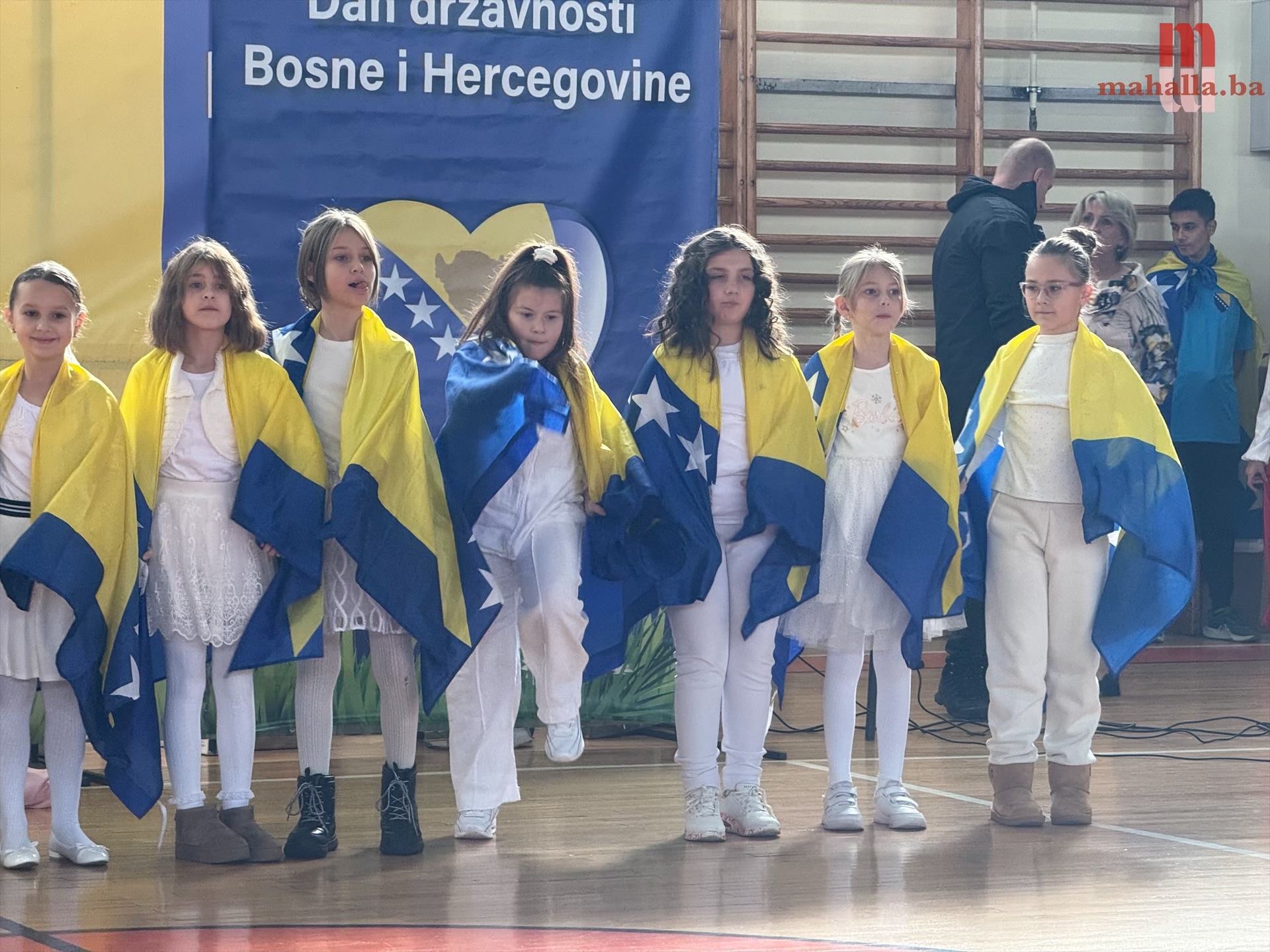 U sali u Novom naselju danas je održana svečana priredba povodom Dana državnosti Bosne i Hercegovine, u organizaciji OŠ “Muhsin Rizvić”, uz učešće učenika i nastavnika OŠ “Ivan Goran Kovačić”.