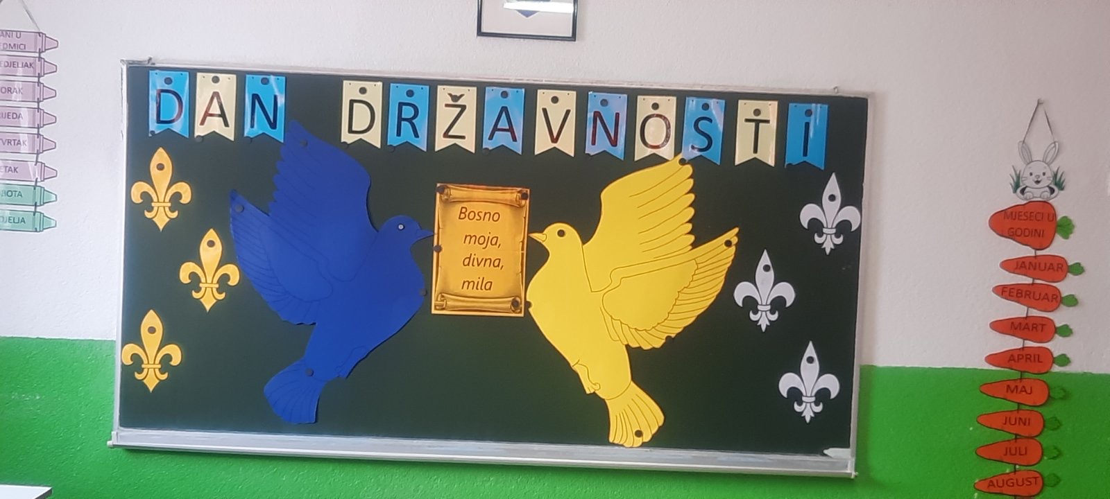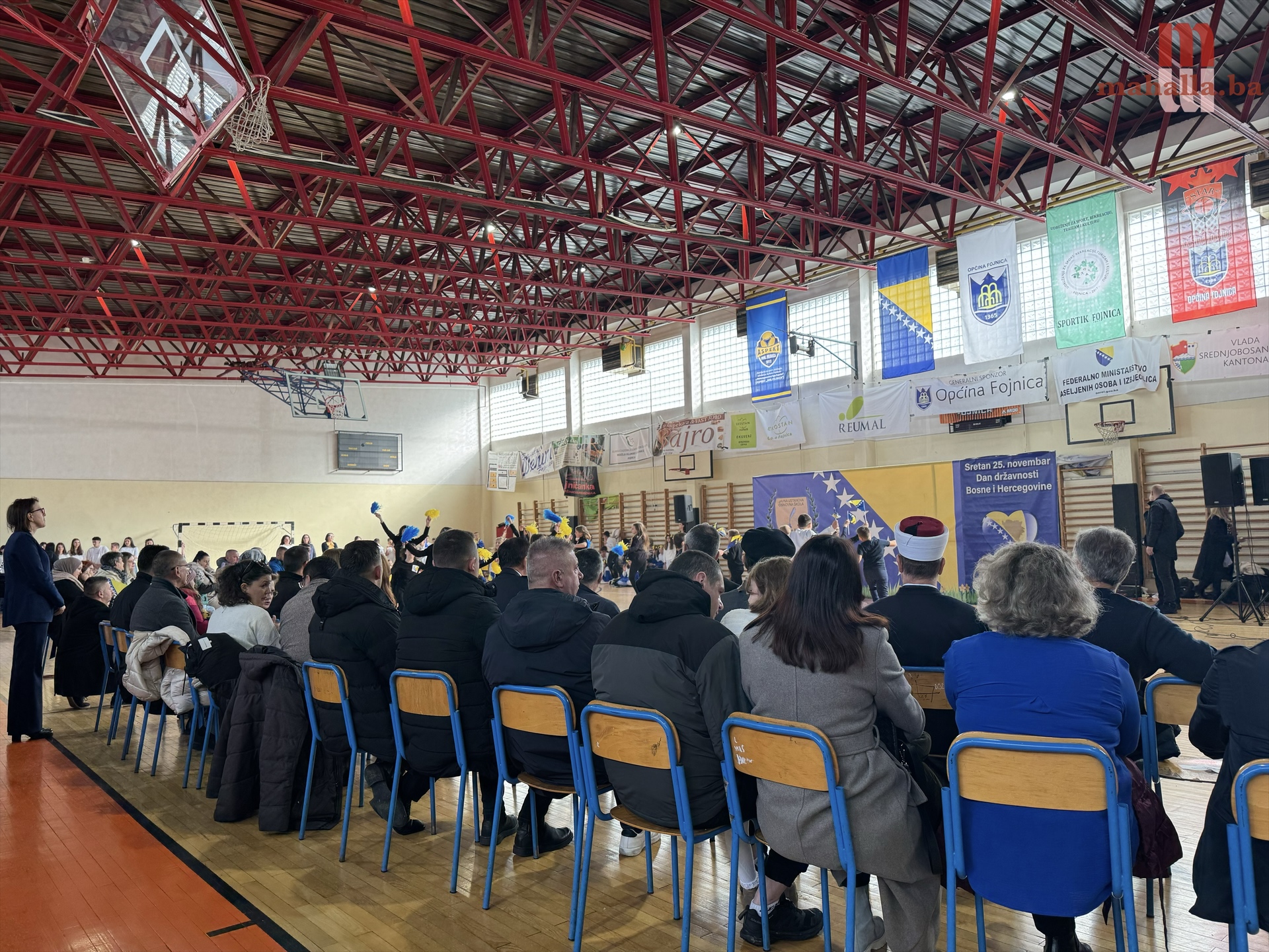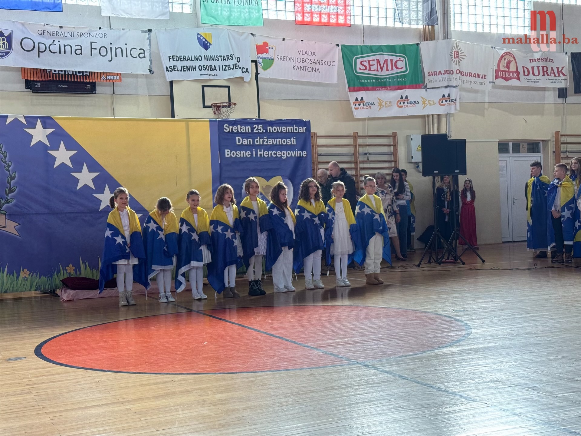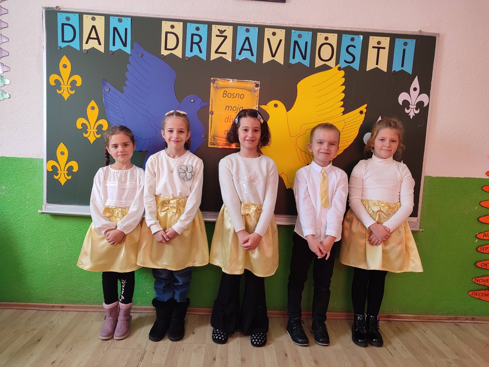 U sali u Novom naselju danas je održana svečana priredba povodom Dana državnosti Bosne i Hercegovine, u organizaciji OŠ “Muhsin Rizvić”, uz učešće učenika i nastavnika OŠ “Ivan Goran Kovačić”.
