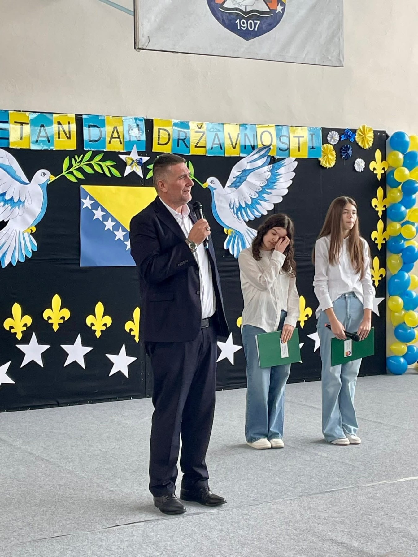 Direktor škole, Nermin Merhemić je poručio: “Danas obilježavamo Dan državnosti Bosne i Hercegovine – dan kada se prisjećamo jedne velike istine: da je naša domovina oduvijek bila zemlja različitih ljudi, ali jednog zajedničkog srca.” “…neka nas Dan državnosti podsjeti da se domovina voli djelima – znanjem, radom, poštenjem i brigom jednih za druge.”