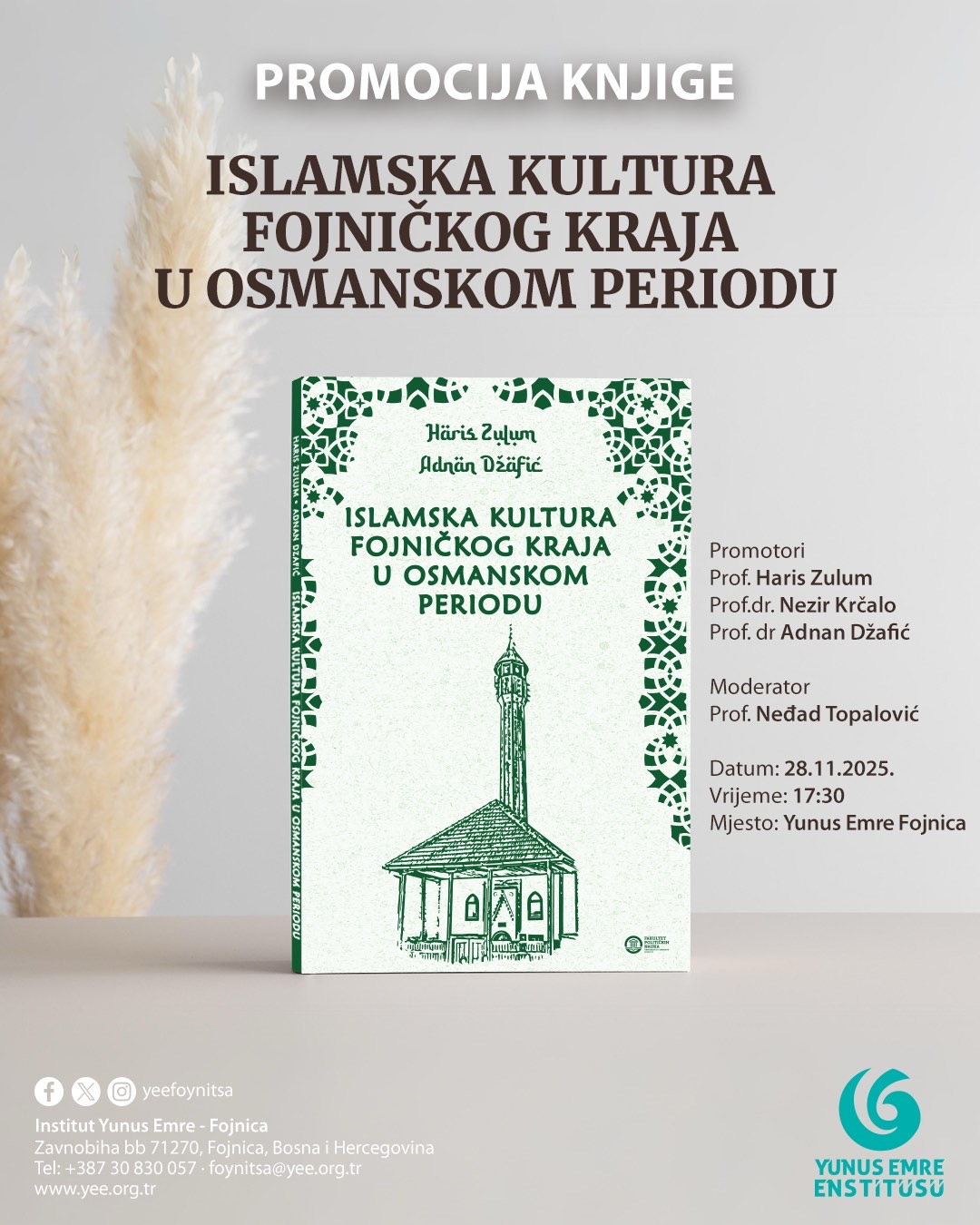Pozivamo vas na svečanu promociju knjige „Islamska kultura fojničkog kraja u osmanskom periodu“, djela našeg Fojničanina, profesora Harisa Zuluma.