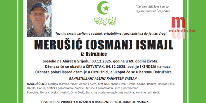 Na Bolji svijet je preselio MERUŠIĆ (OSMAN) ISMAJL iz Ostružnice.
