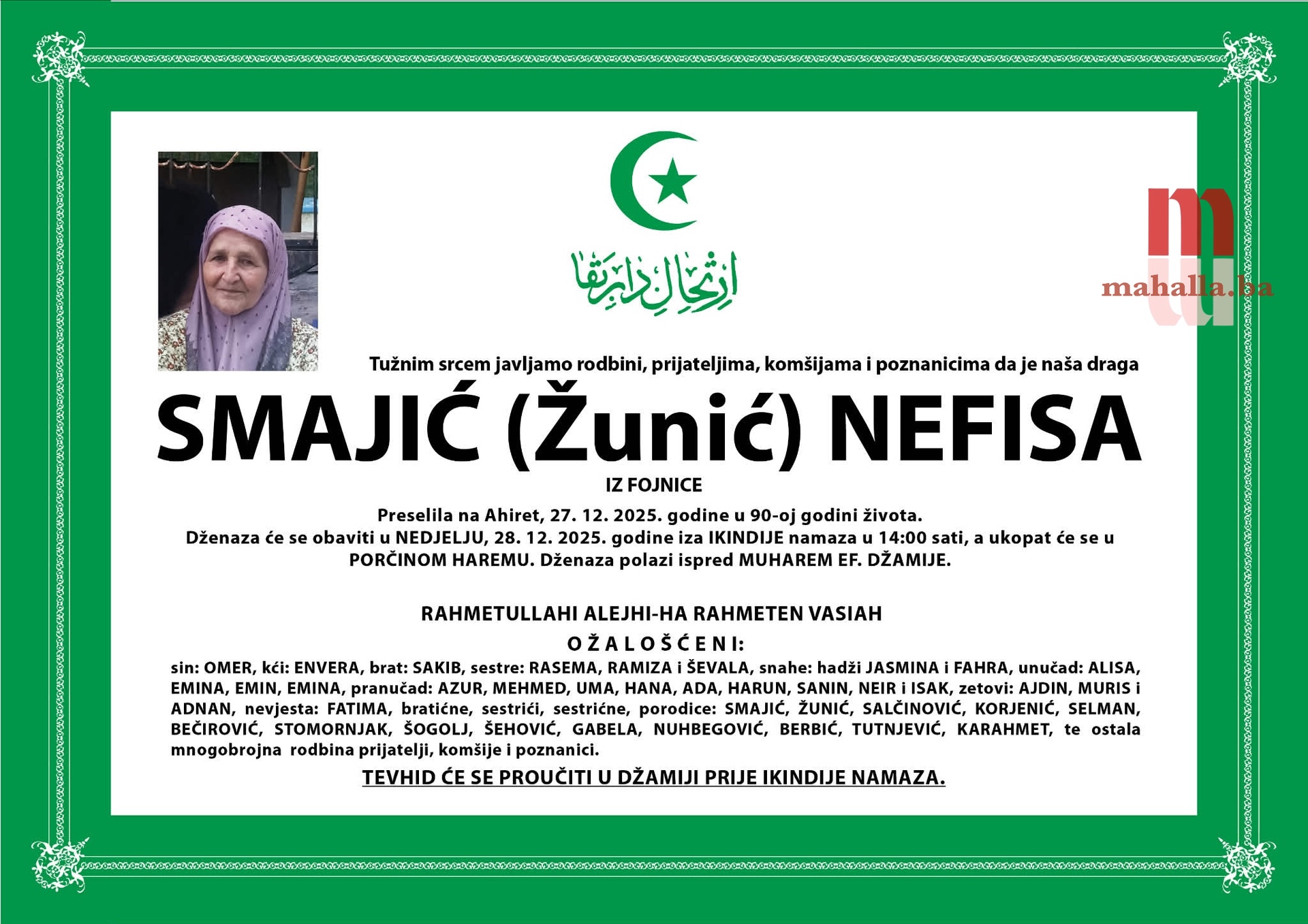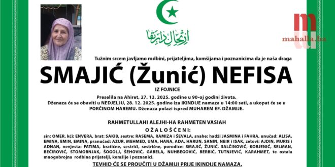 Na Bolji svijet je preselila SMAJIĆ (Žunić) NEFISA iz Fojnice.