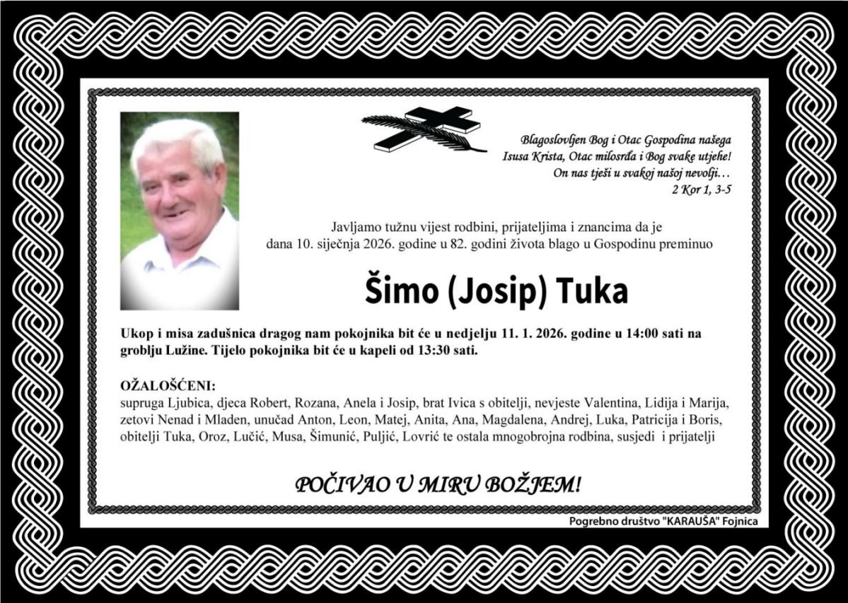 Preminuo je Šimo (JOSIP) TUKA iz Lužina u 82. godini života.