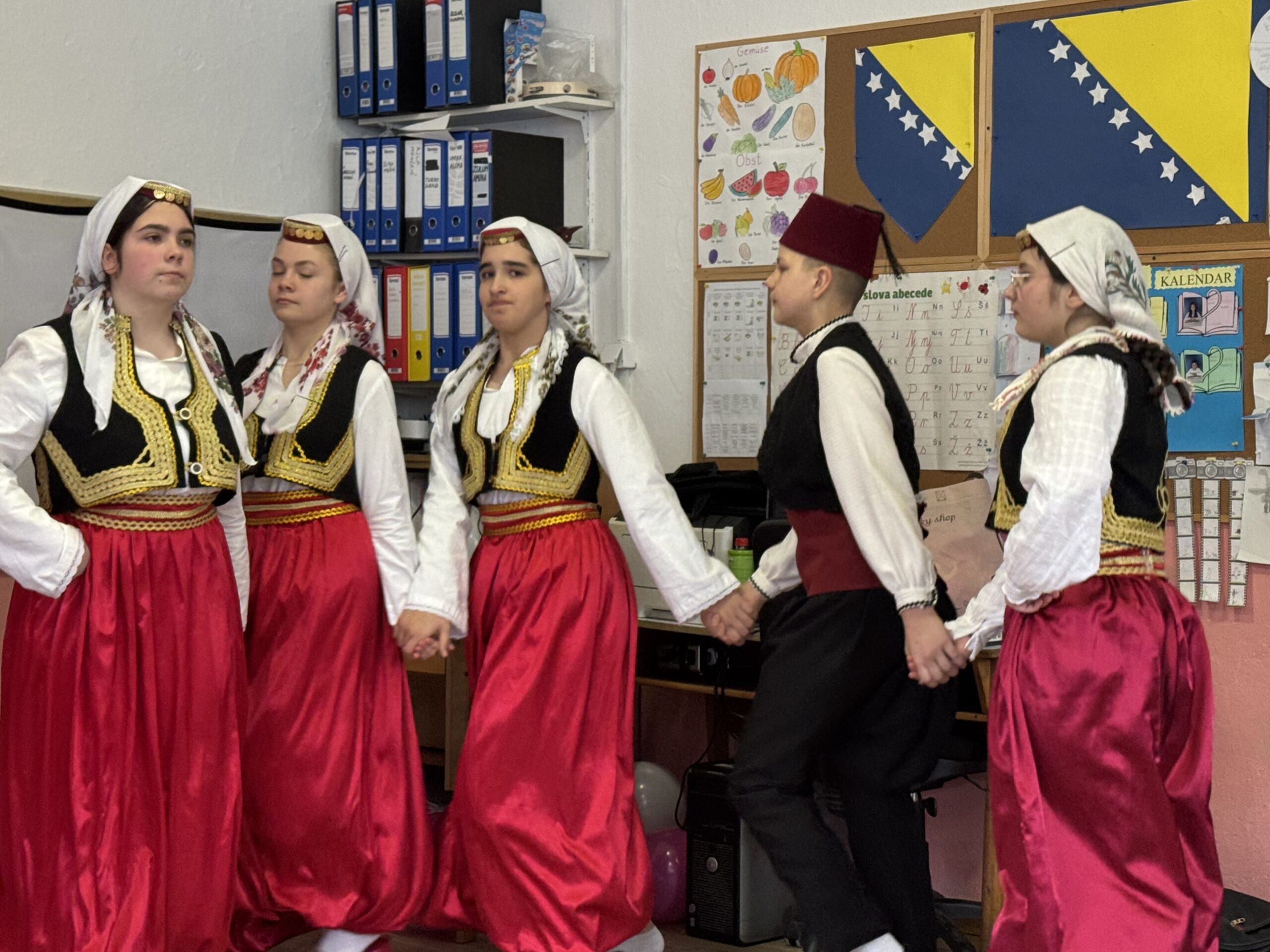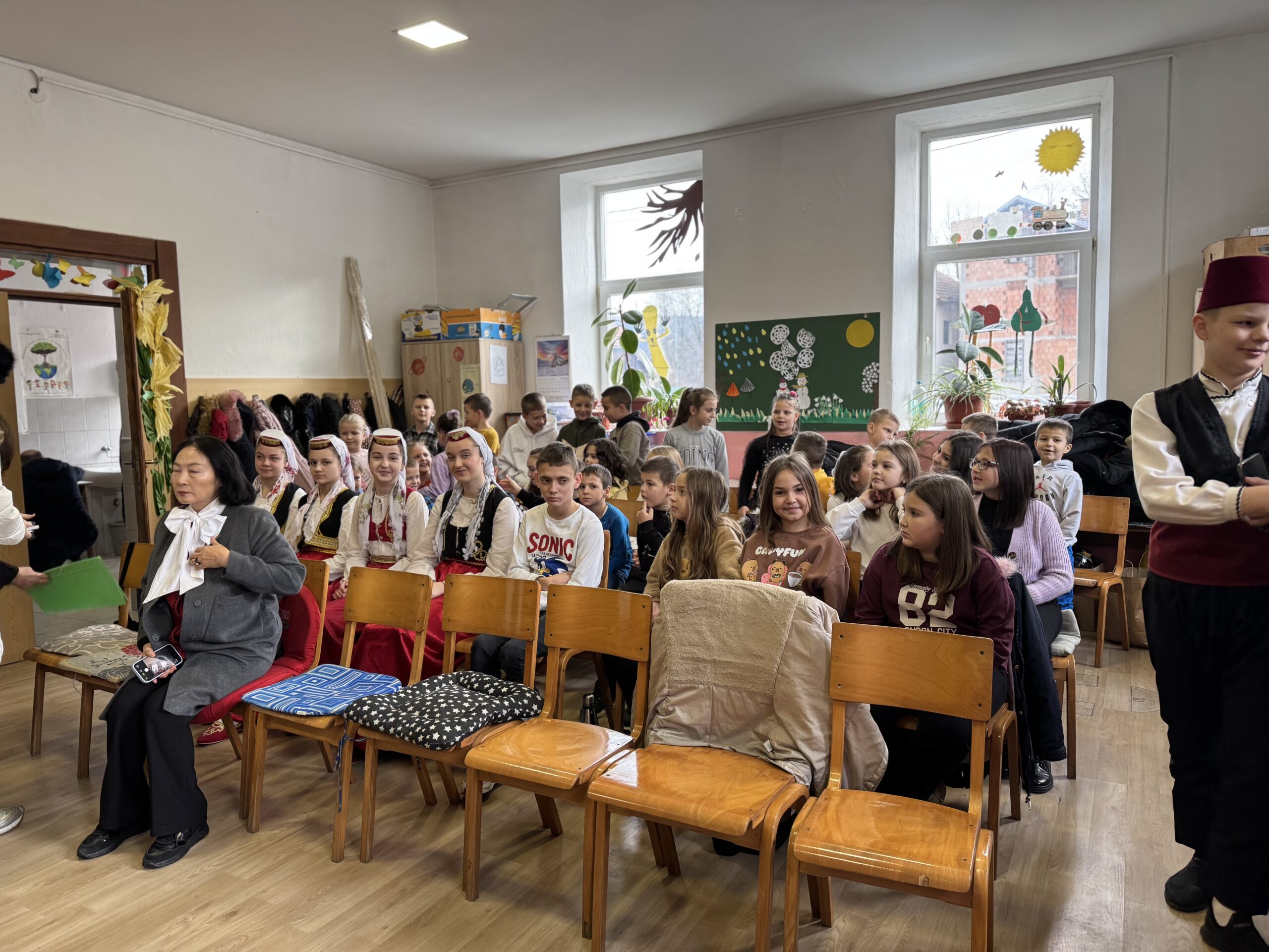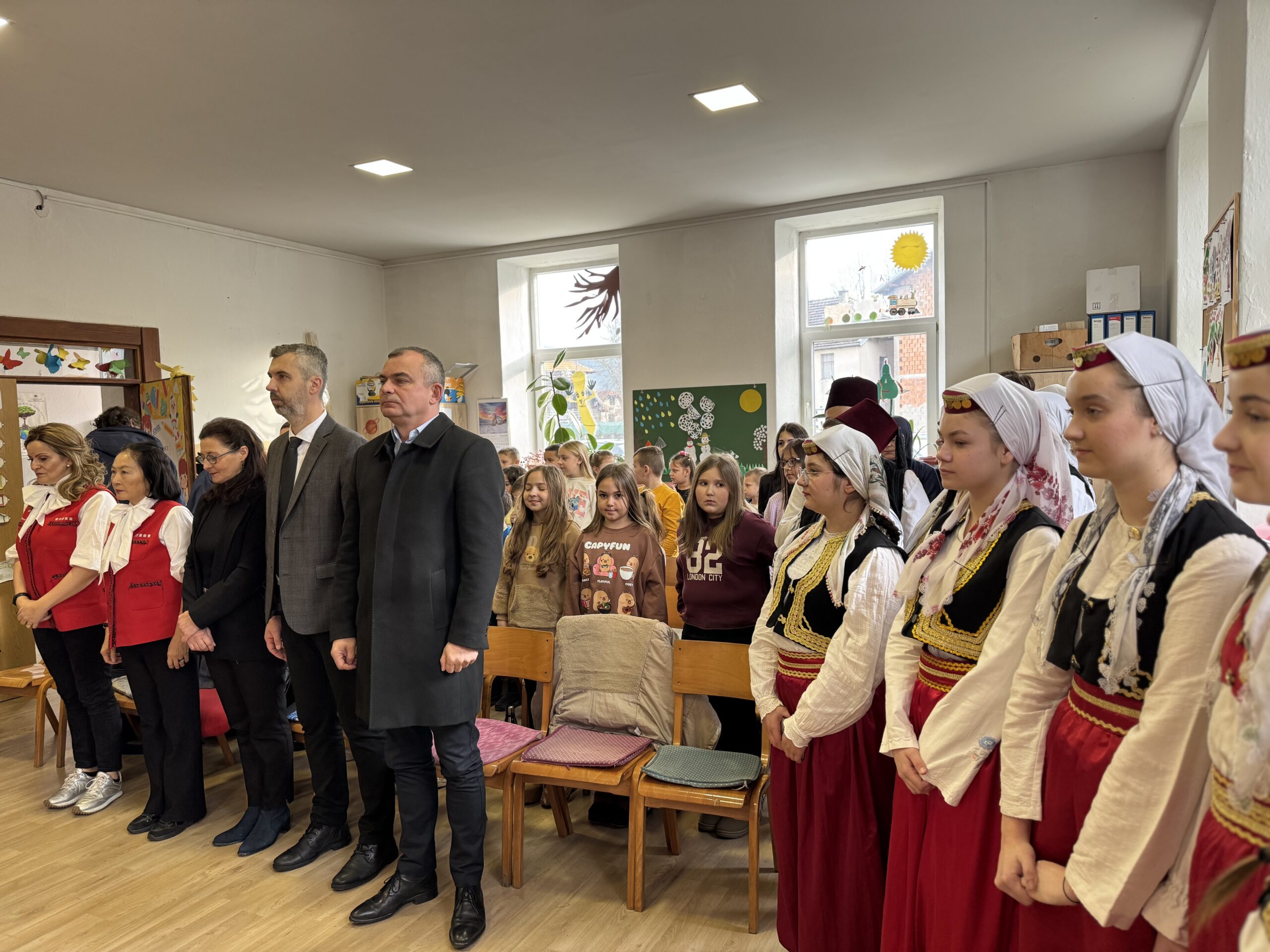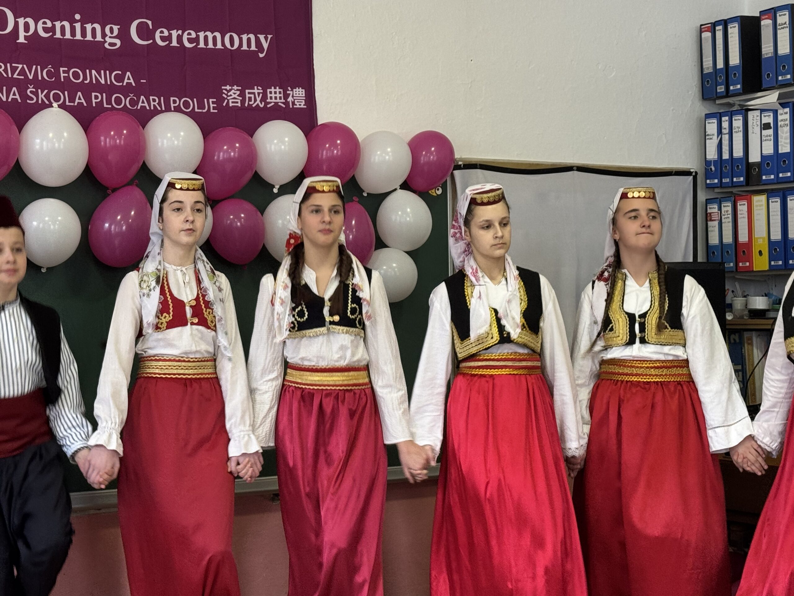 Svečani dio programa upotpunili su učenici, koji su izveli zajedničku pjesmu i narodne igre našeg kraja, a potom je uslijedilo simbolično presijecanje vrpce i otkrivanje ploče.