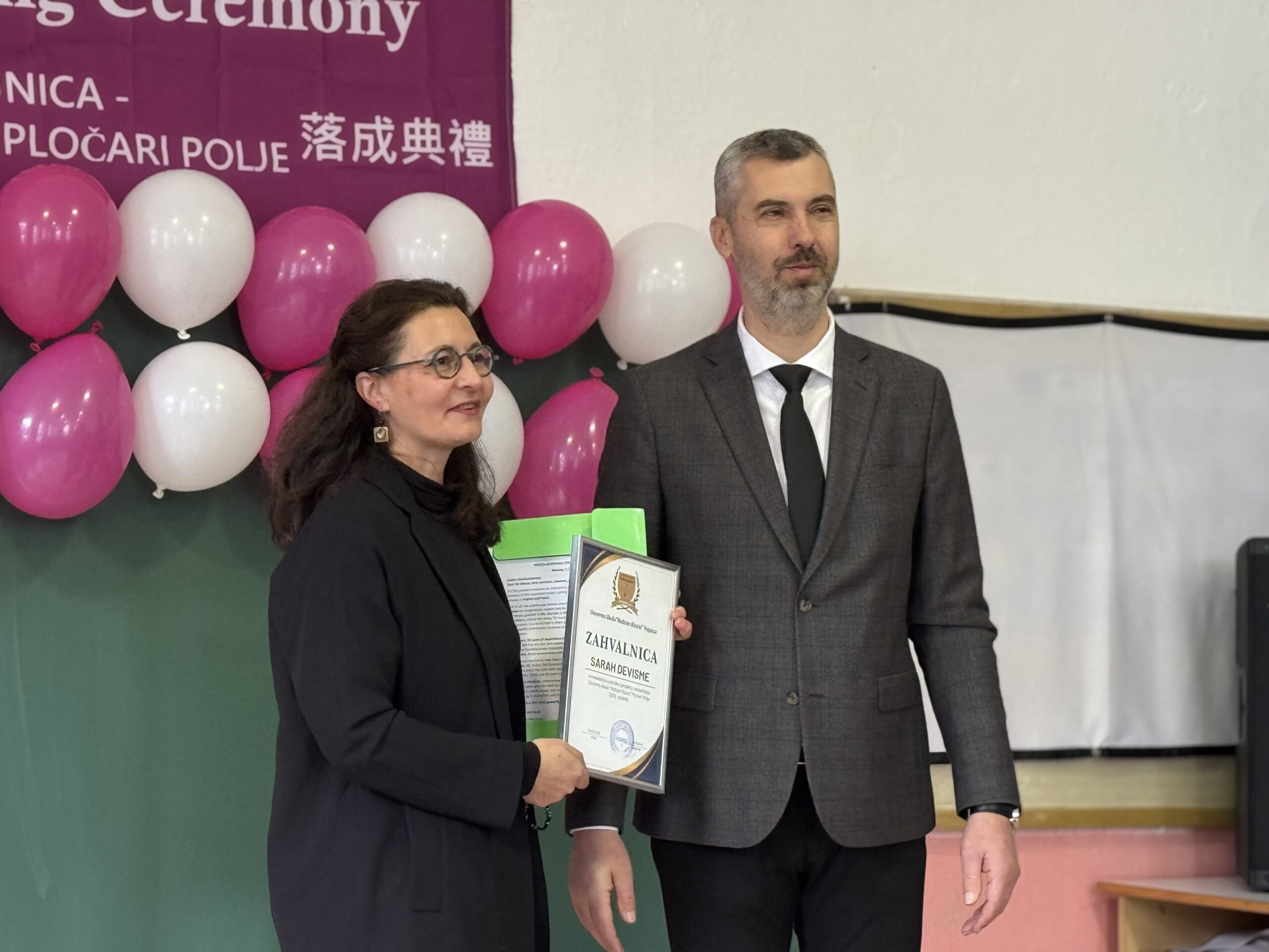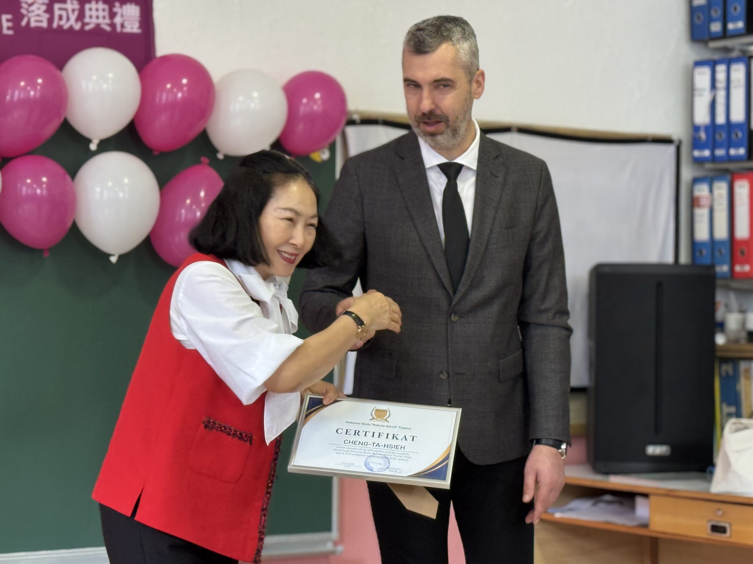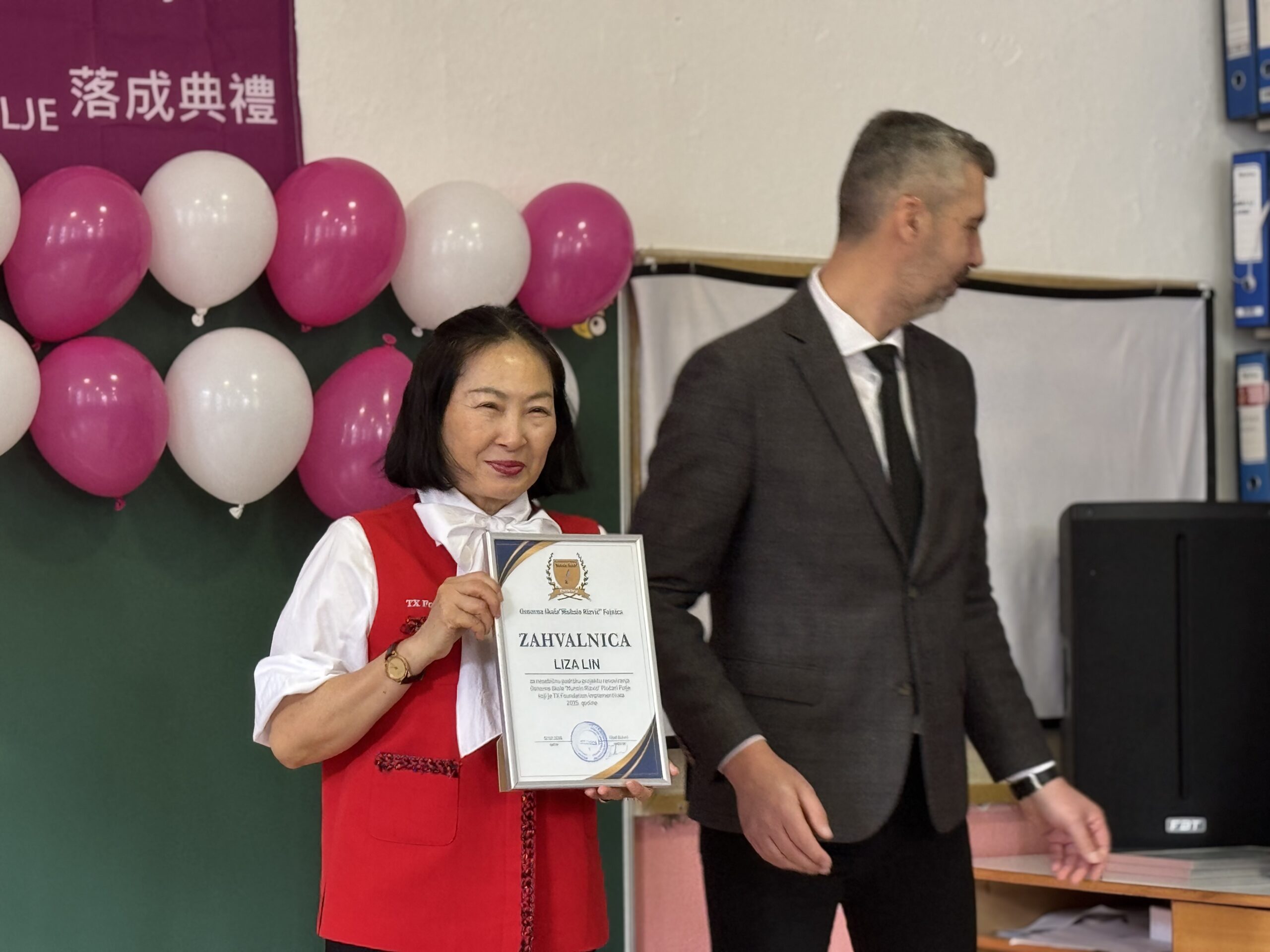 Tokom ceremonije uručene su Zahvalnice predstavnicima TX Foundation – predsjednici Lizi Lin, sekretarki Fondacije Ani Shay, kao i Sarah Devisme te Fredi Mirikilis. Certifikat je dodijeljen i osnivaču Fondacije Cheng-Ta-Hsieh, a u njegovo ime ga je preuzela Liza Lin.