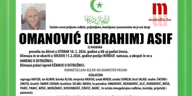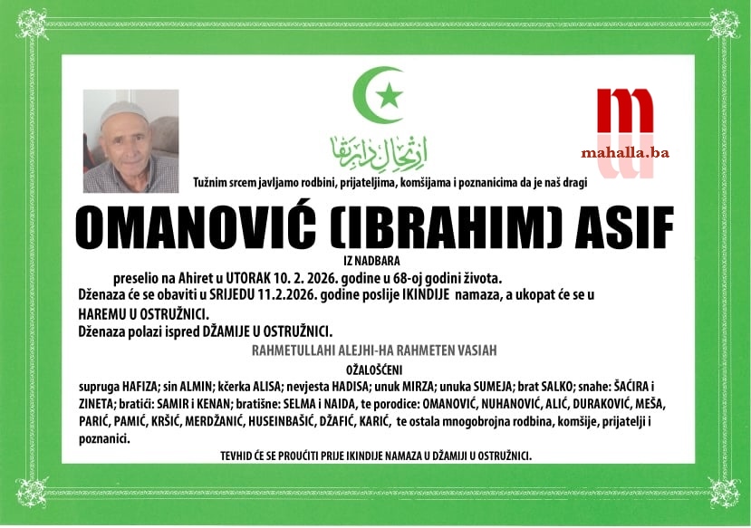 Na Bolji svijet je preselio OMANOVIĆ (Ibrahim) ASIF iz Nadbara.