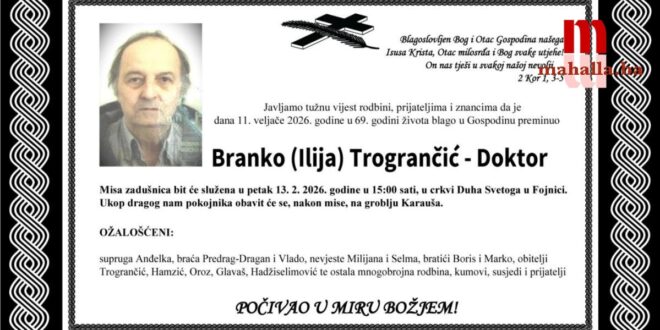 Preminuo je BRANKO (Ilija) TROGRANČIĆ – Doktor iz Fojnice.
