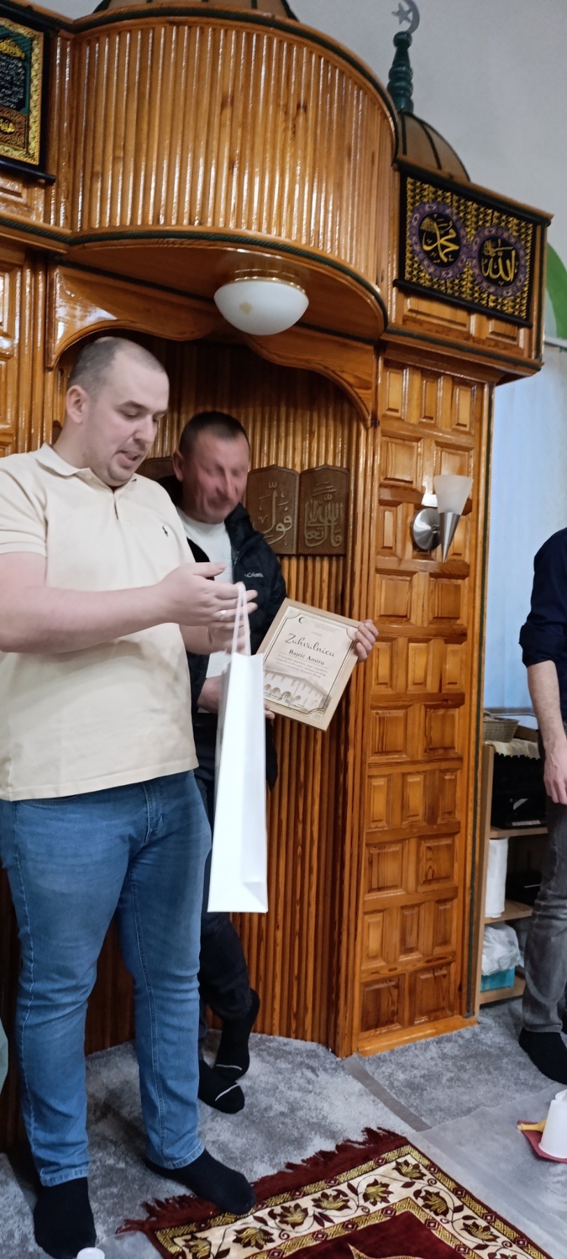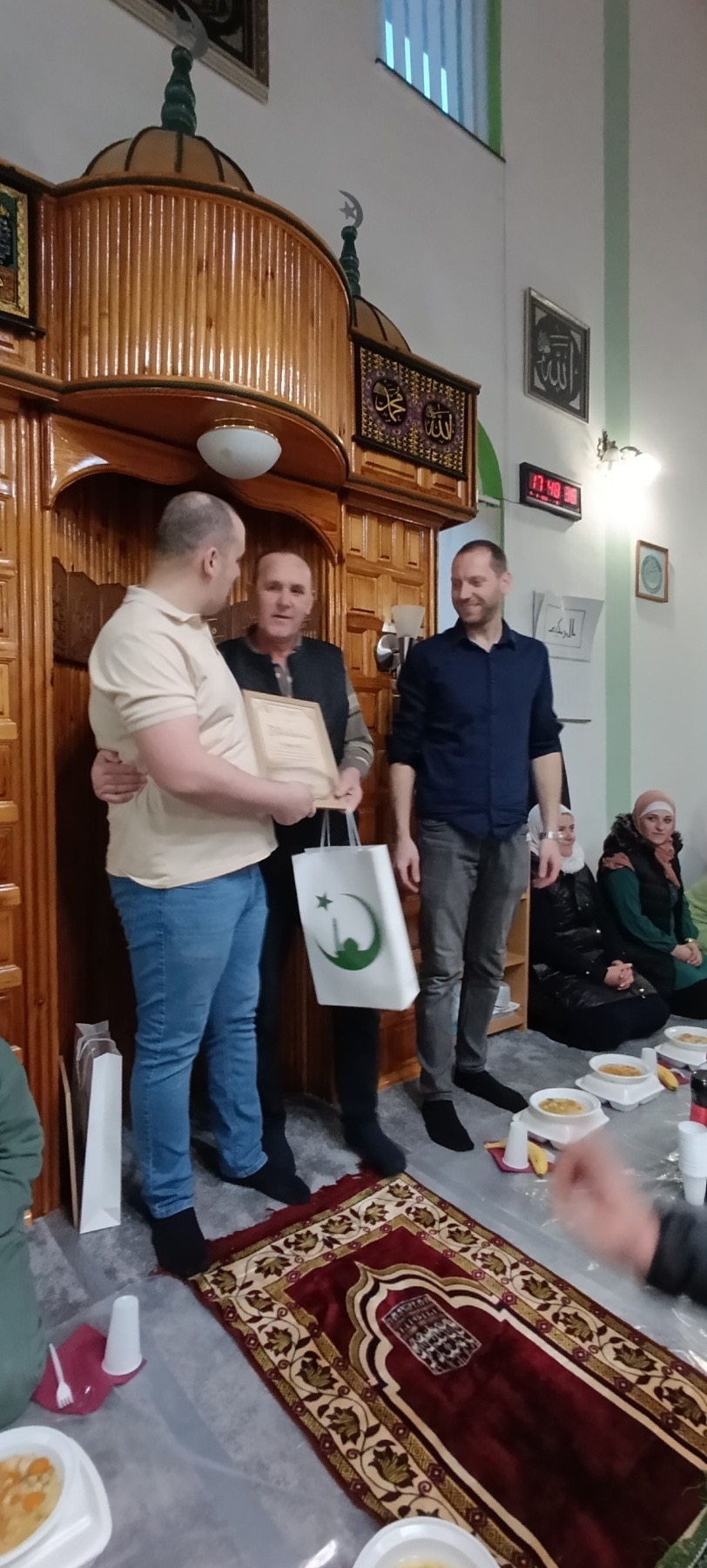 Poseban trenutak večeri bila je podjela zahvalnica onima koji svojim trudom, podrškom i doprinosom pomažu rad mesdžida. Ovim gestom željeli su iskazati zahvalnost svima koji nesebično ulažu svoje vrijeme i trud za dobrobit mesdžida.