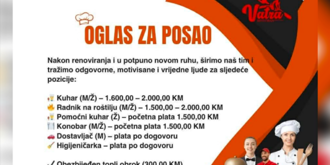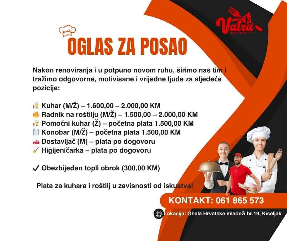 🔥 Radnik na roštilju (M/Ž) – 1.500 – 2.000 KM