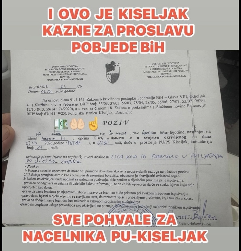Pozivi građanima u svojstvu okrivljenih, izdati dan ranije, jasno pokazuju da je policija ipak poduzimala konkretne radnje. Takav poziv ne predstavlja običan razgovor, nego formalni korak u postupku, zasnovan na osnovu sumnje za počinjenje prekršaja.