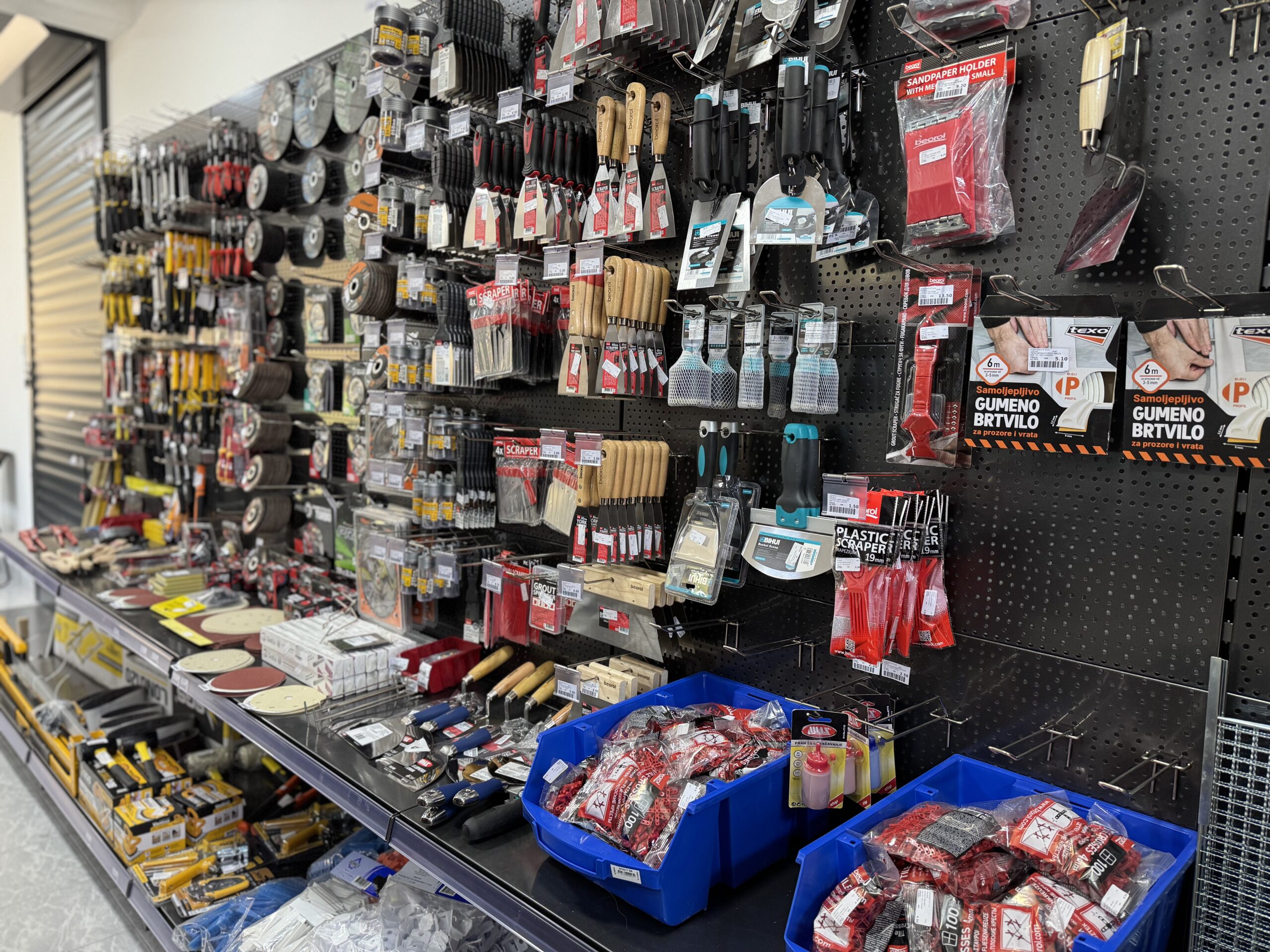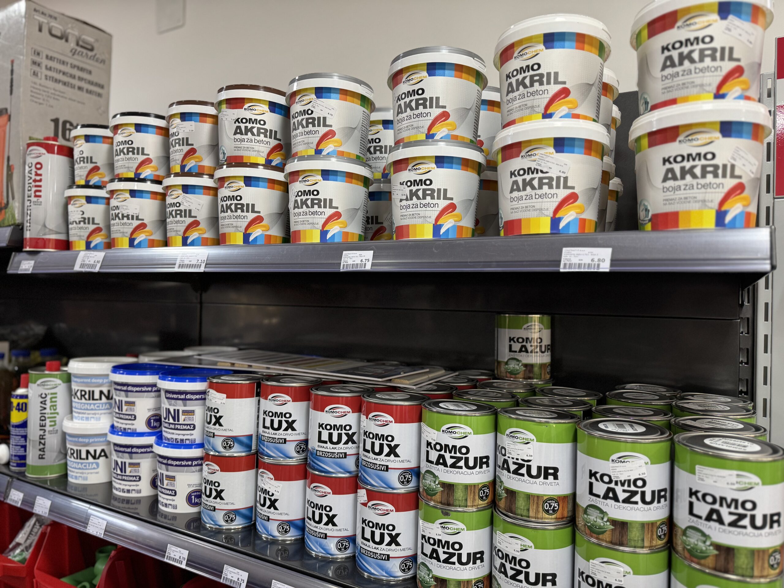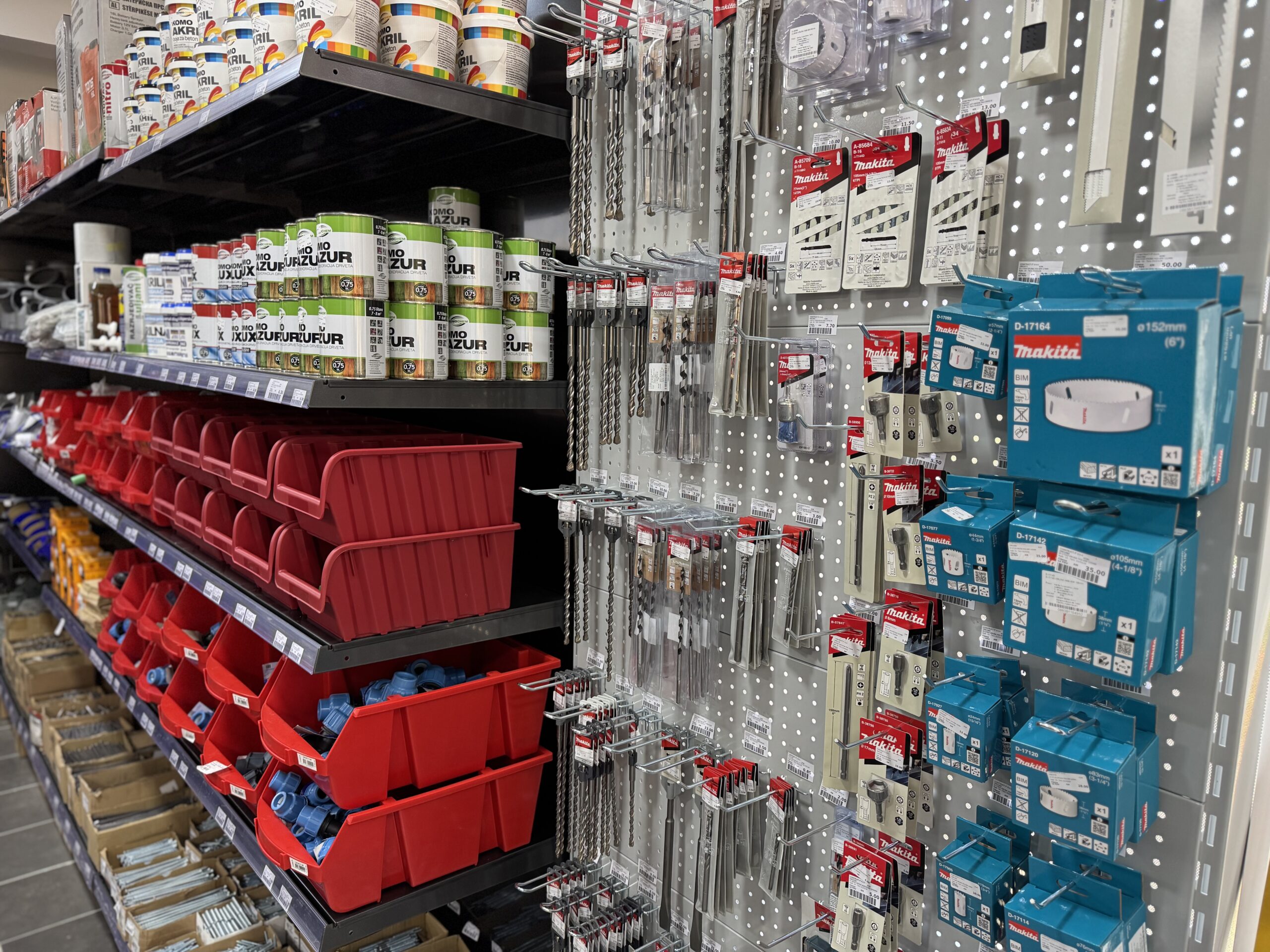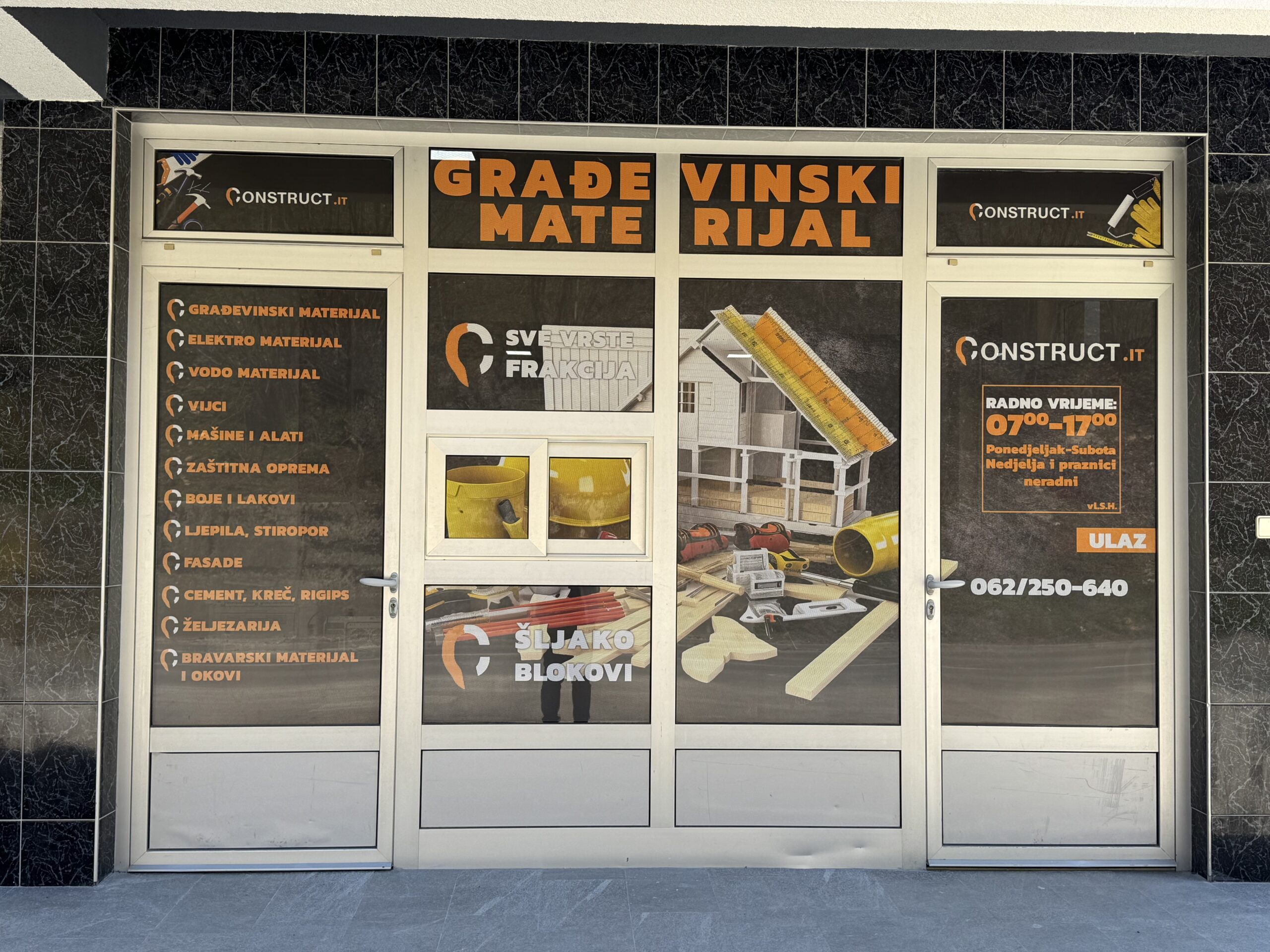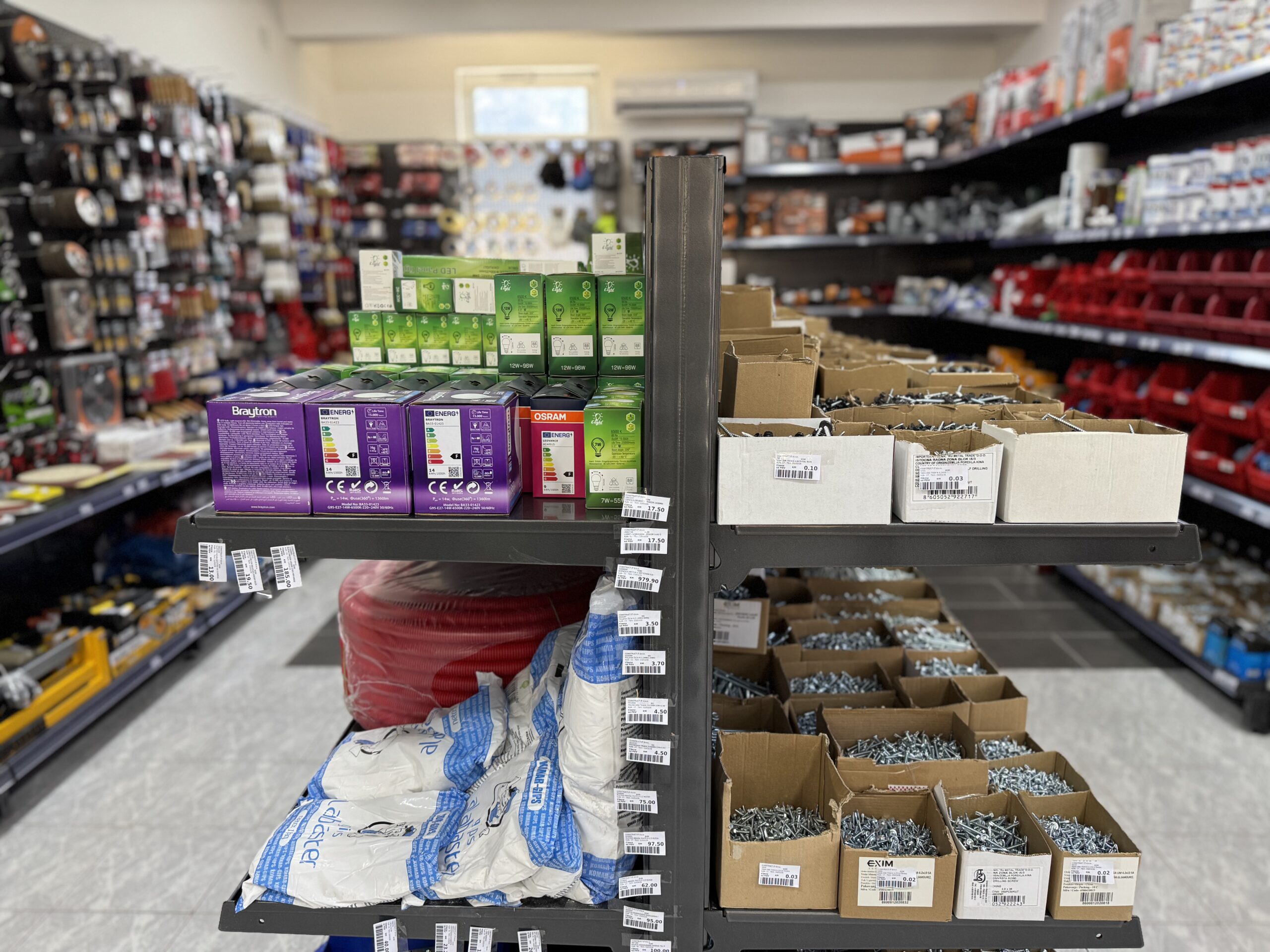 Nova radnja u Nadbarama kupcima nudi širok asortiman proizvoda potrebnih za gradnju, adaptaciju i završne radove. U ponudi se nalaze građevinski materijal, elektromaterijal, vodomaterijal, vijci, mašine i alati, zaštitna oprema, boje i lakovi, ljepila, stiropor za fasade, cement, kreč, rigips, željezarija, bravarski materijal i različiti okovi.