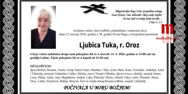 Preminula je LJUBICA TUKA, rođ. Oroz iz Fojnice u 78. godini života.