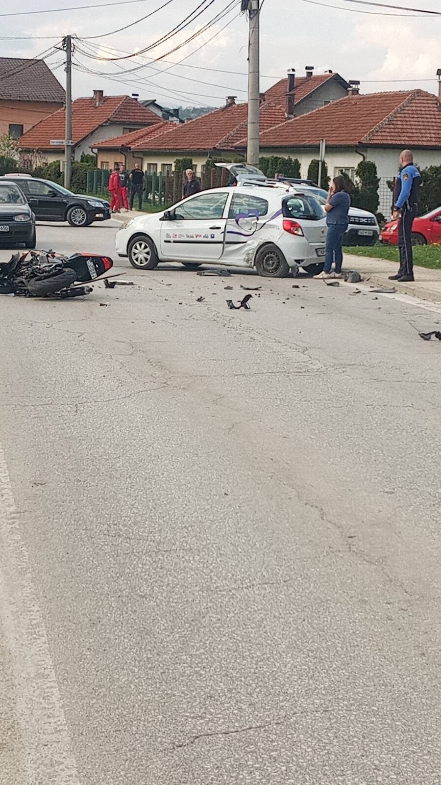 Prema dostupnim podacima, u nesreći su učestvovali putničko motorno vozilo i motocikl. Na fotografijama s mjesta događaja vidljivo je da je motocikl završio na kolovozu, dok je na automobilu pričinjena značajna šteta, što ukazuje na silinu sudara.
