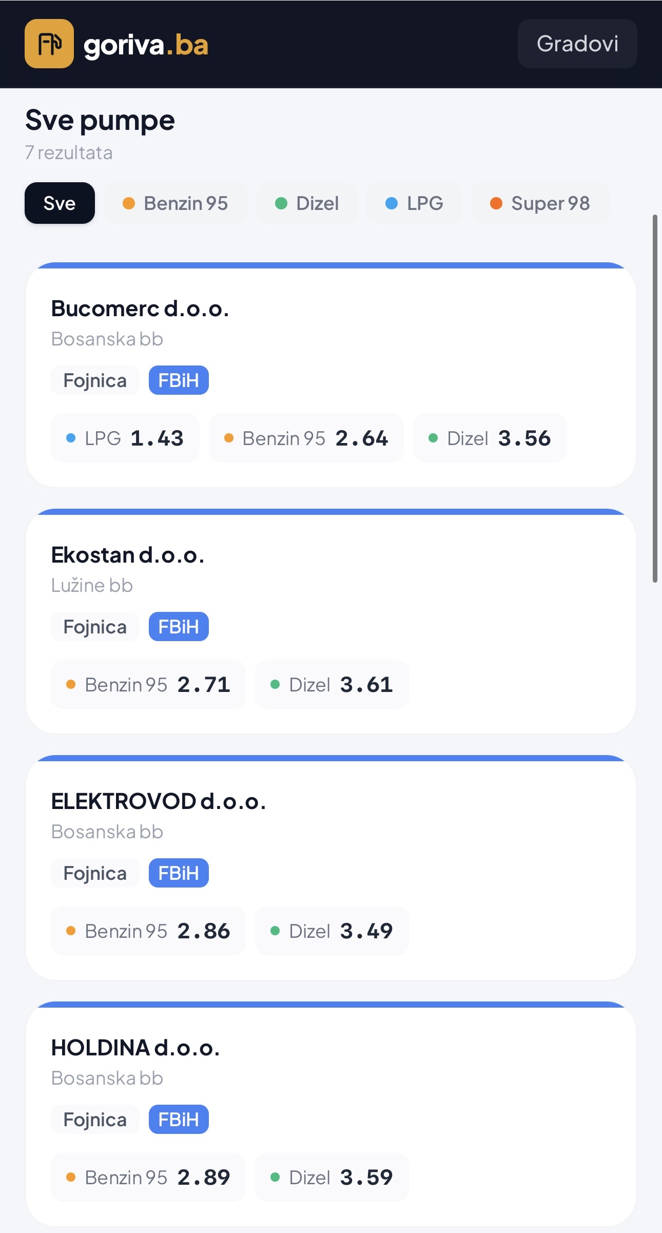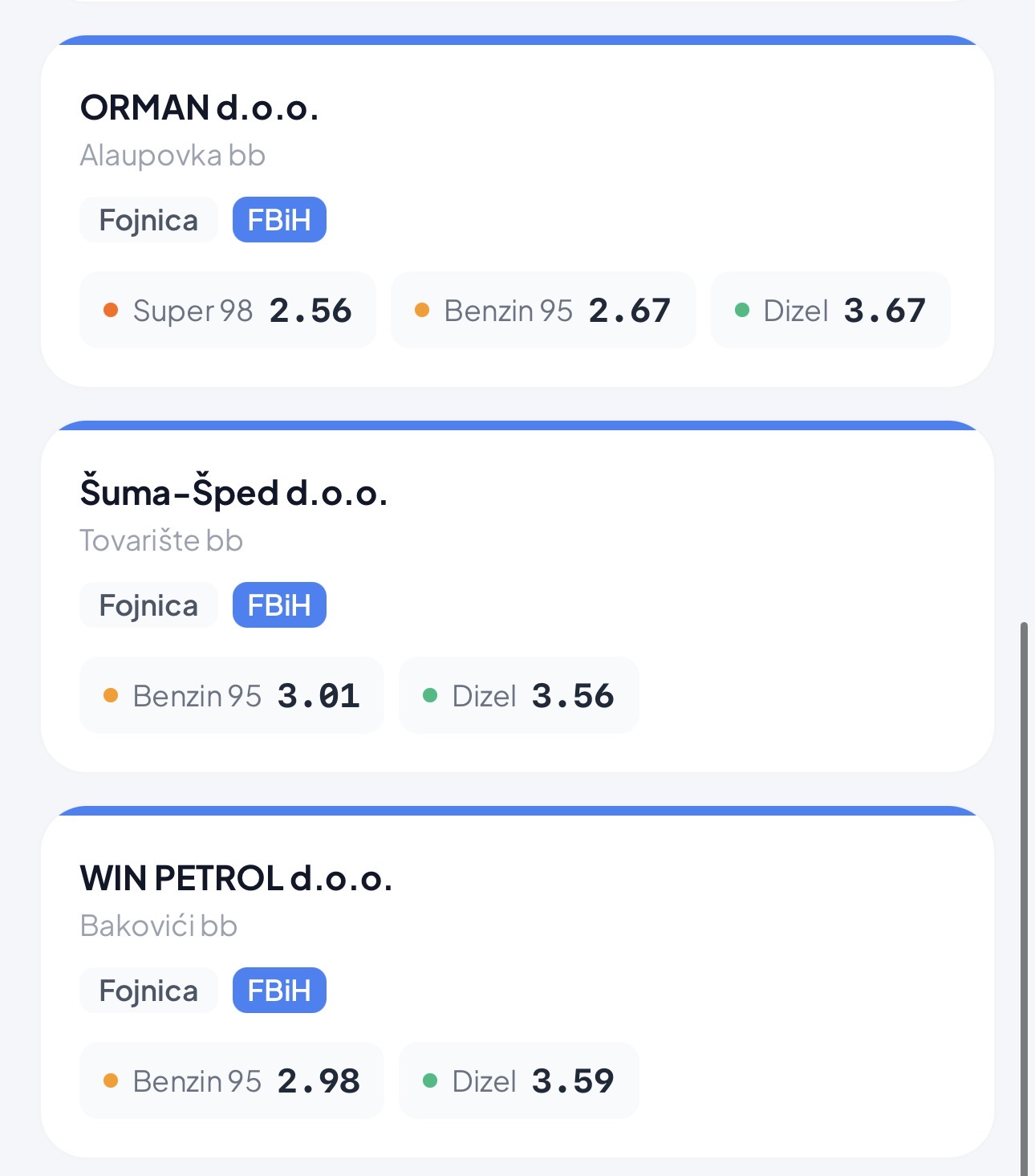 Iako su prije dvije sedmice vozači u Fojnici već bili suočeni s visokim cijenama goriva, najnoviji podaci pokazuju da je došlo do dodatnih promjena – na pojedinim pumpama cijene su porasle, dok su na nekima zabilježeni i blagi padovi.
